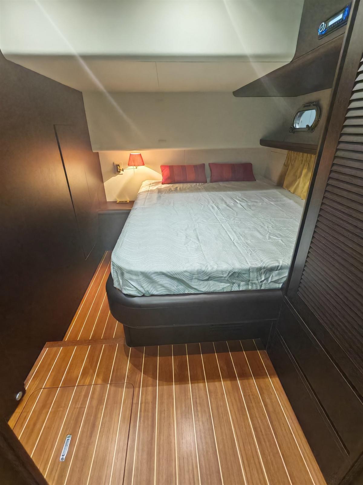 Possibilité d’échange partiel - plate-forme arrière rabattable, ordinateur de bord, VRT T-top sur le flybridge, plancher de flybridge en teck, etc.