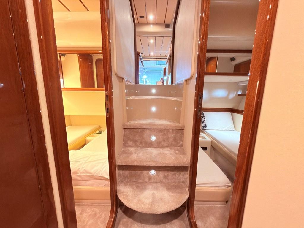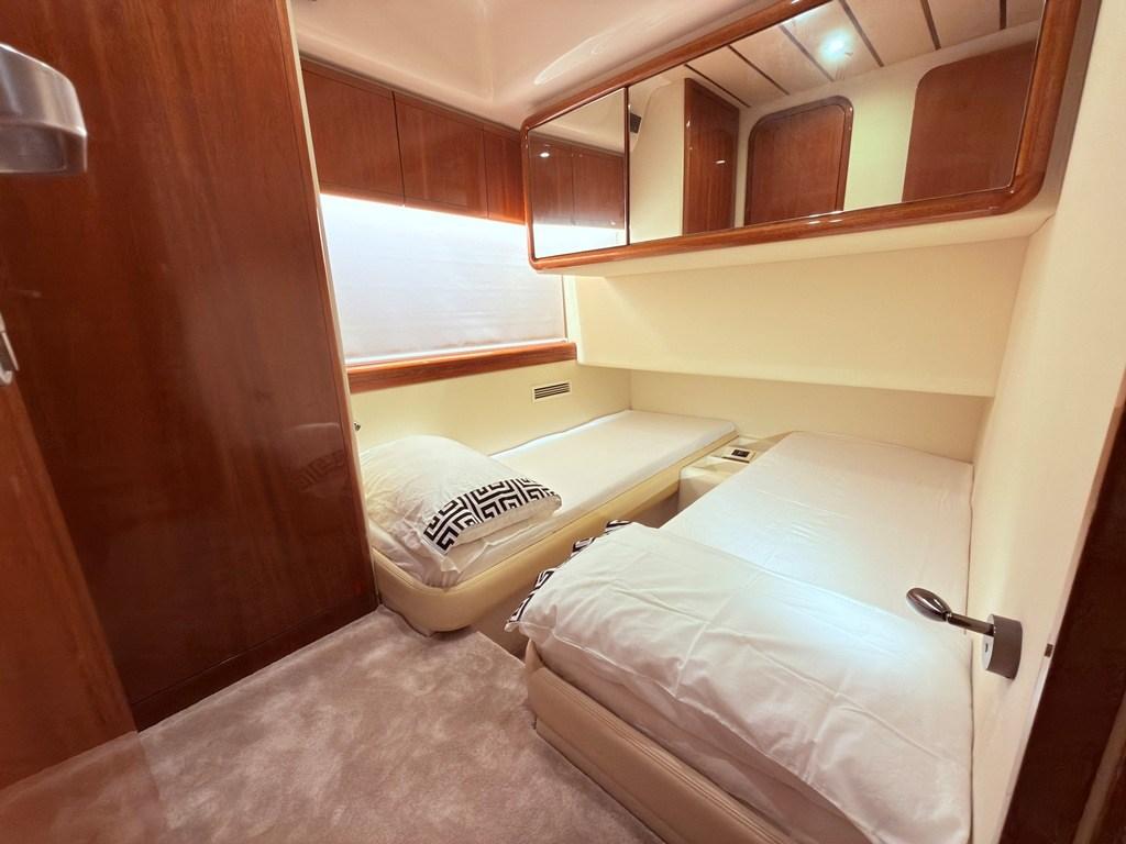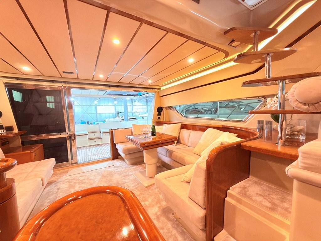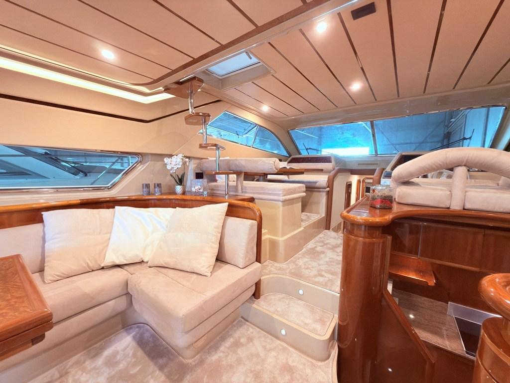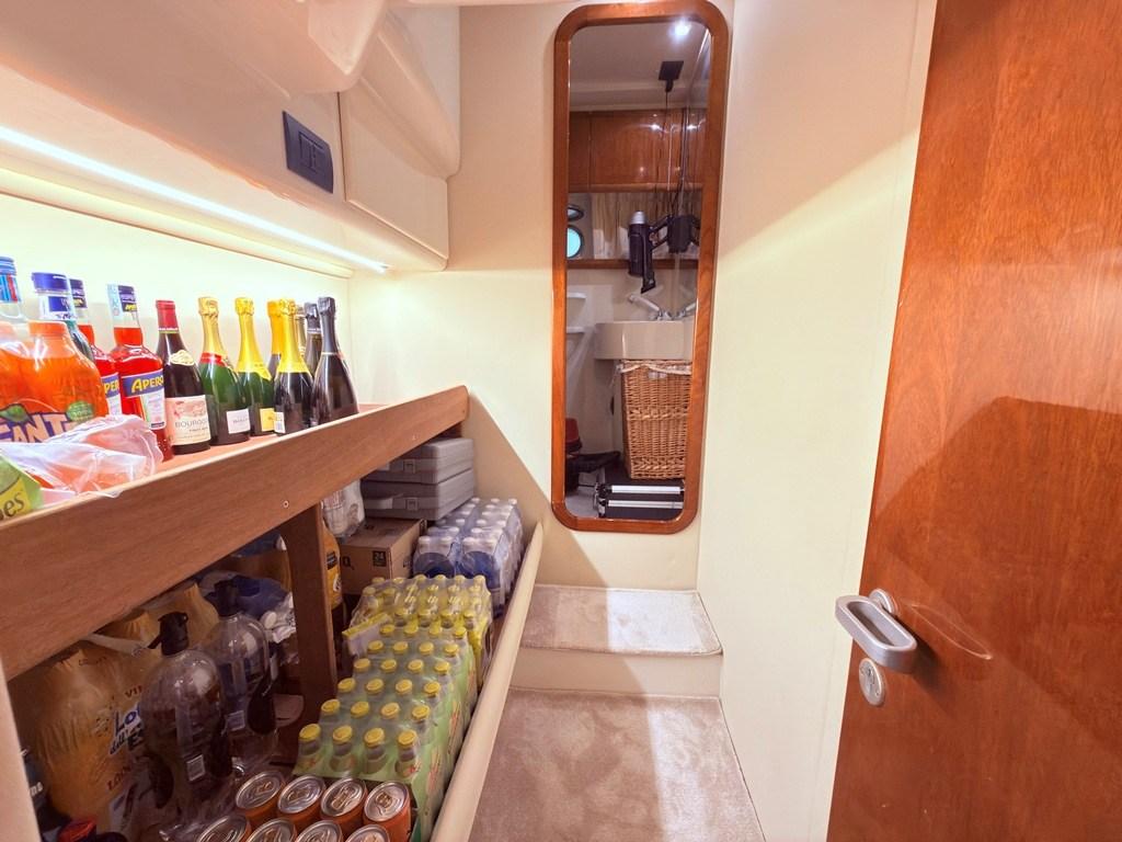 Alarme moteur, Alarme de pompe de cale, Ancre (Catena in acciaio), Eau sous pression, Batteries (2024), Câble d’alimentation à quai, Propulseur de poupe (2025 Max Power), Propulseur d'étrave (2025 Max Power), Flaps hydrauliques, Extincteur(s) fixe(s), Indicateurs de flaps, Lavage de chaine, 2 Lavabo dans le cockpit (Acqua dolce e salata), Éclairage de courtoisie, Spots sous-marins, Passerelle (idraulica 350 Kg), Plateforme arrière (di poppa in Vetroresina), Pompe à Eau de Mer, Cockpit en teck, Prise de quai, Connexion eau sous pression à quai, Onduleur, Répétiteur électronique (Display maxi Garmin), Rollbar, Guindeau électrique, Echelle de bain, Selles pour Annexe, 2 Winch, 2 Winch électrique arrière, Winch électrique avant.