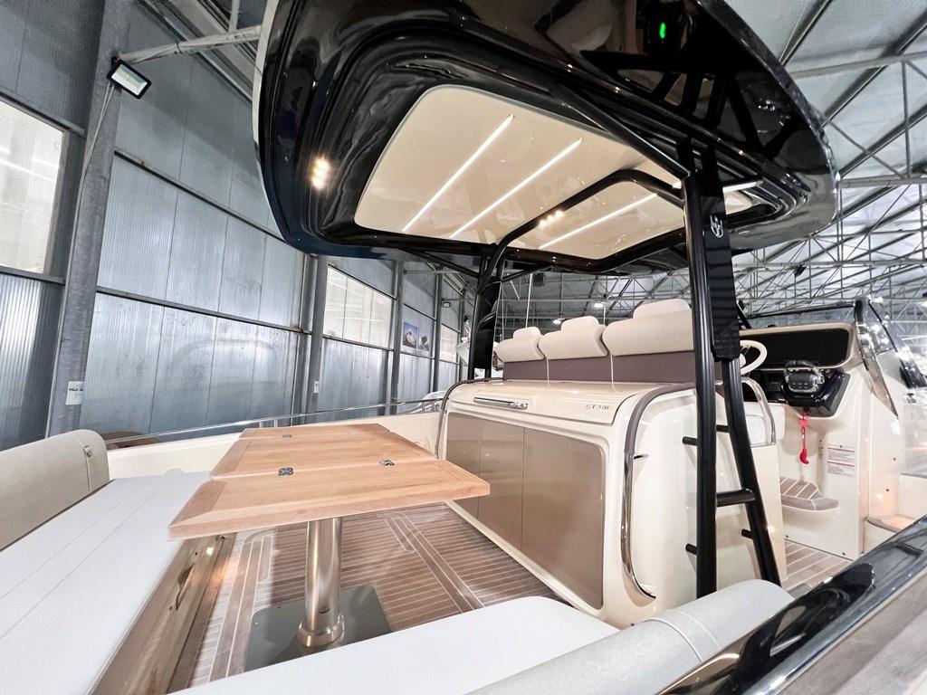Alarme moteur, Eau sous pression, Couleur spéciale (fiancate (Wild Bronze)), Douche de cockpit, Flaps électriques, Hard top (in carbonio), Extincteur(s) fixe(s), Éclairage de courtoisie, Prise de quai, Connexion eau sous pression à quai, Onduleur, Guindeau électrique, Echelle de bain, table de cockpit, Corne.