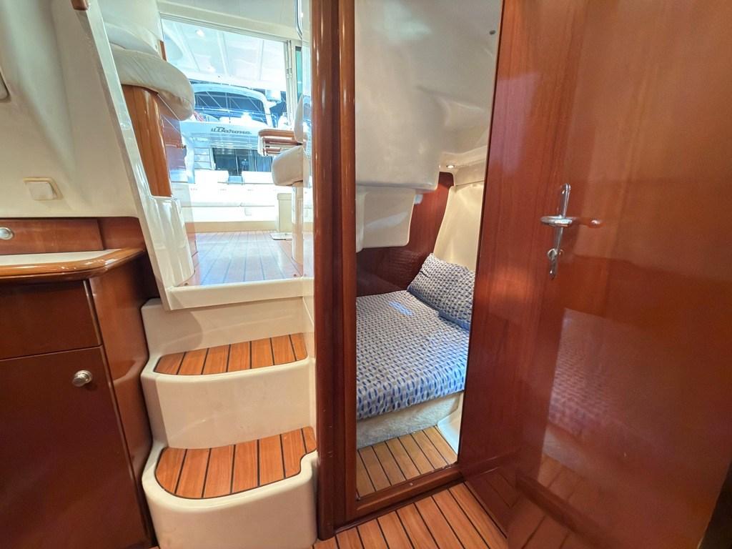 Eau sous pression, 4 Batteries, Douche de cockpit, Flaps électriques, Extincteur(s) fixe(s), Indicateurs de flaps, Passerelle (Idraulica), Plateforme arrière (Allungata 2025), Cockpit en teck, Prise de quai, Guindeau électrique (Catena 60 metri), Winch électrique avant.