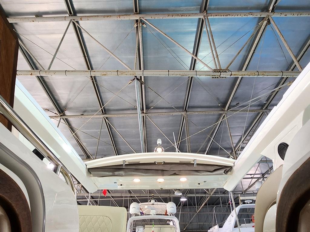Alarme moteur, Eau sous pression, Douche de cockpit, Flaps électriques, Hard top, Extincteur(s) fixe(s), Éclairage de courtoisie, Passerelle (idraulica), Plateforme arrière, Porte latérale, Cockpit en teck, Connexion eau sous pression à quai, Guindeau électrique, Echelle de bain.