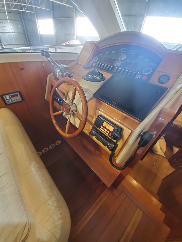Indicateur d'angle de barre, Antenne radar (Garmin), Sondeur pêche (Garmin Fisch Finder), Plotter GPS (GPSMAP Garmin 1222xsv Touch - Multifunzione: Radar - Eco Fish Finder), Radio VHF (Icom IC-M411).