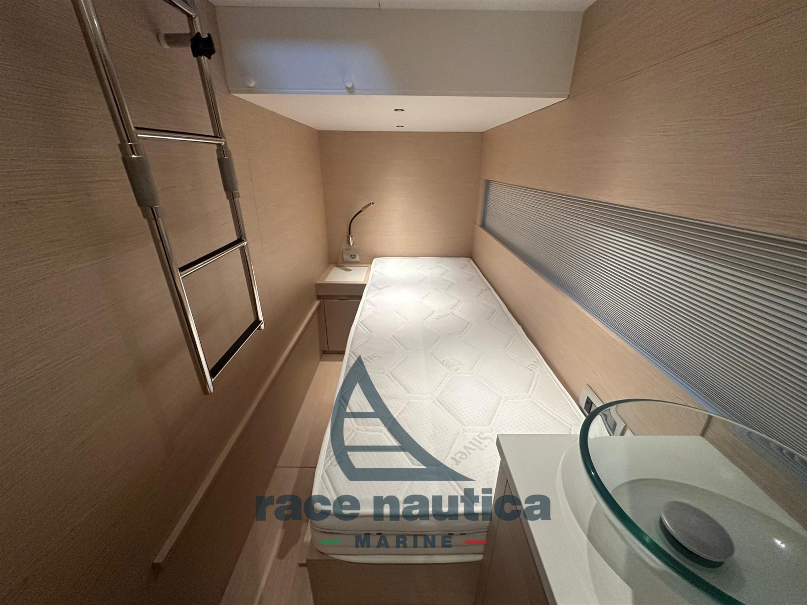 Moteurs Volvo Penta IPS 800, 100 heures de service, système de positionnement dynamique Volvo, stabilisateur Seakeeper 6, propulseur à la proue, coque - superstructure - pont - pont arrière peint avec des matériaux haute température post-durcissement peint, pont en teck naturel finition noire, supplément pour finition grise, plateforme arrière partiellement allongée avec système de levage, table de cockpit pliante avec deux pieds électriques, coussins supplémentaires et dossiers inclinables, système de lancement du tender avec rouleaux et treuil électrique, deux bornes rétractables pour le tender sur la plateforme arrière, mobilier de cockpit pour le rangement et la détente, supplément de design en losange sur la sellerie extérieure, trappe ouvrante à la proue, hublot d’ouverture dans la coque arrière de la cabine, ensemble fenêtre ouvrante, toit coulissant sur le pont principal, climatisation réversible chaud/froid, climatisation pour la cabine de l’équipage, équipements de cabine d’équipage, machine à café et vaisselle Solaris Power, ancre en acier inoxydable de 35 kg, table pliante en salle à manger avec coussins électriques pour pieds et canapés, comptoir de chaîne numérique, projecteur électrique, kit d’amarrage, pack TV, TV LCD dans la salle à manger avec mécanisme de relevage, système sonore, batterie de service supplémentaire de 180 Ah, onduleur 2500W, veilleuses extérieures sur la passerelle, deux prises étanches de 220V sur le côté, deux écrans Volvo 16" plus un troisième, radar GMG Fantom 40W, Garmin AIS - 800RX/Tx, générateur de 12 kW, auvent avant avec poteaux rétractables, ensemble de couverture, auvent électrique intégré dans la maison de pont, pare-soleil pour le pare-brise avant et les fenêtres de la maison de pont, échelle personnalisée, repose-pieds de poste de barre, kit de rampe, linge de lit, rampes d’escalier internes.