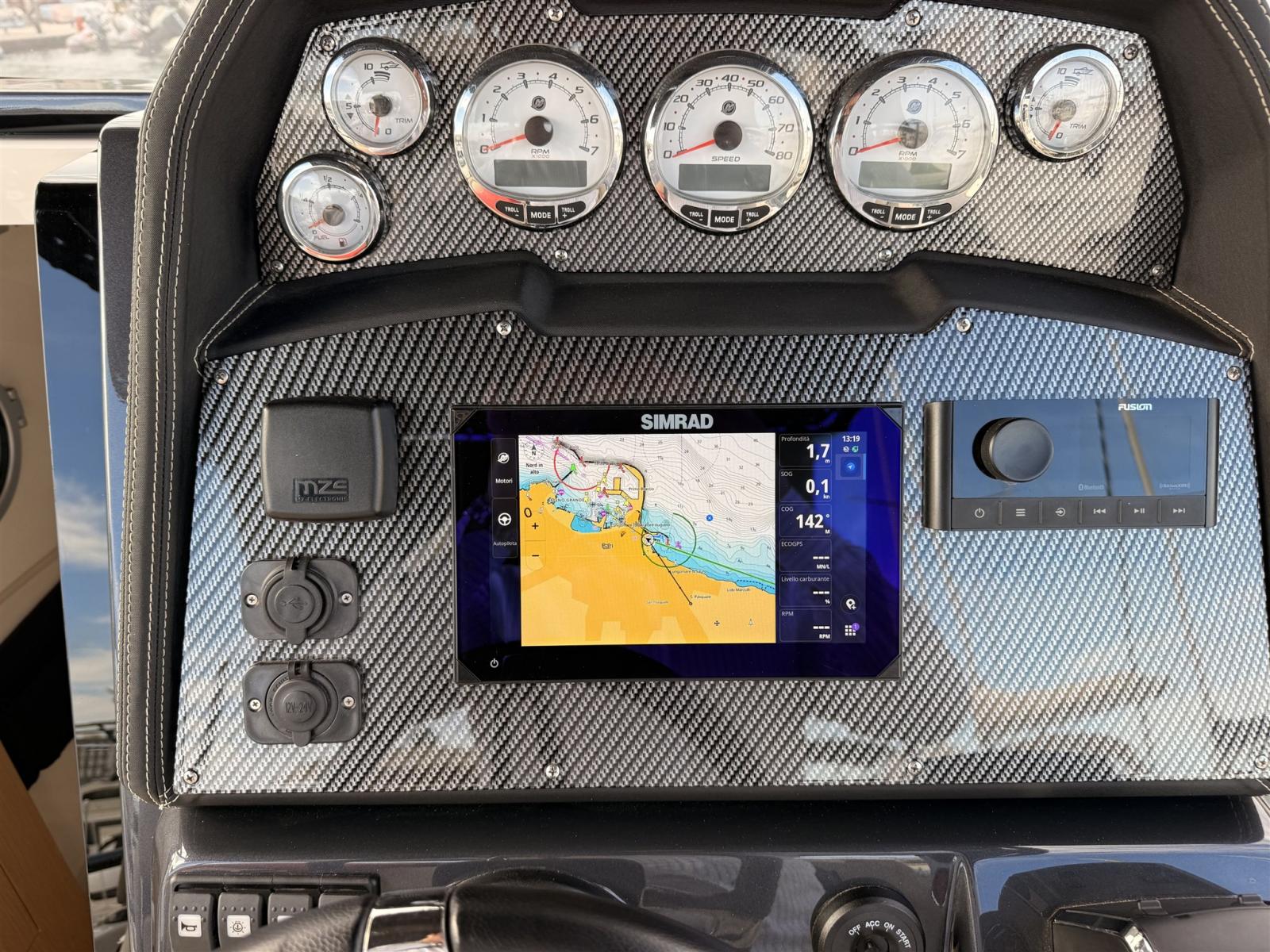 Bateau au look sportif et élégant, en configuration Full Optional, avec un équipement à fort impact grâce aux tubes gris Impression et au magnifique T-Top entièrement noir. Conçu pour offrir confort, style et performance, il est la solution idéale pour ceux qui recherchent un bateau récent, complet et prêt à l’emploi.
