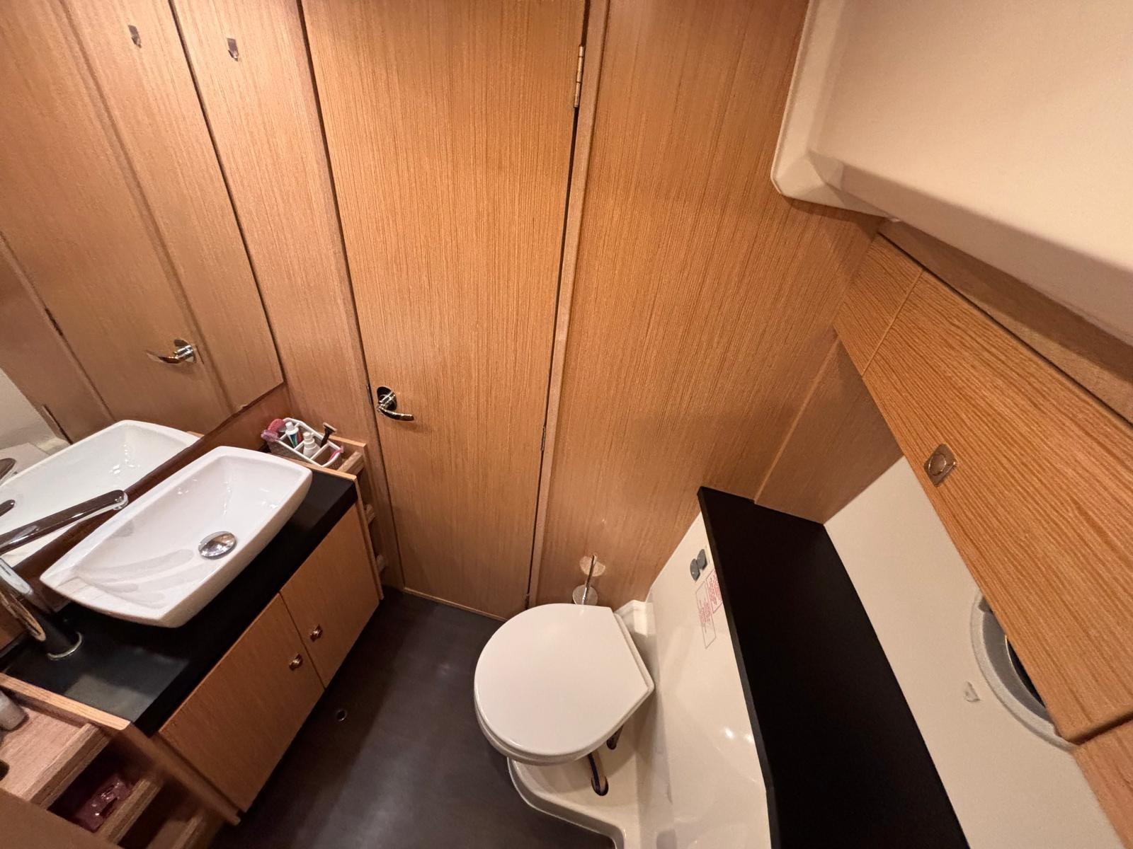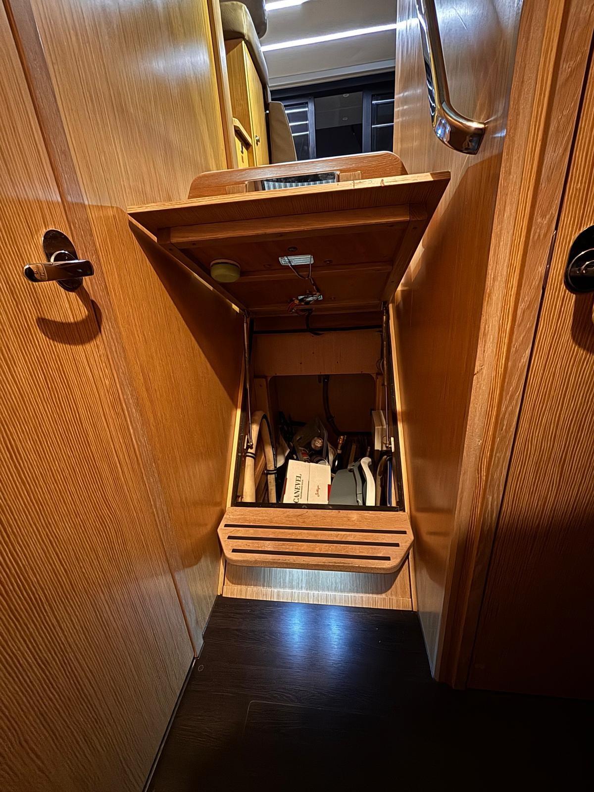 Air conditionné (32.000 BTU), Ballon d'eau chaude, Coffre-fort, Cuve à eaux noires, Plancher intérieur en bois, Prises interieures 12v, Prises interieures 220v, Réservoir d'eau noire, Caméra vidéo (Retrocamera), 2 Toilettes électriques.