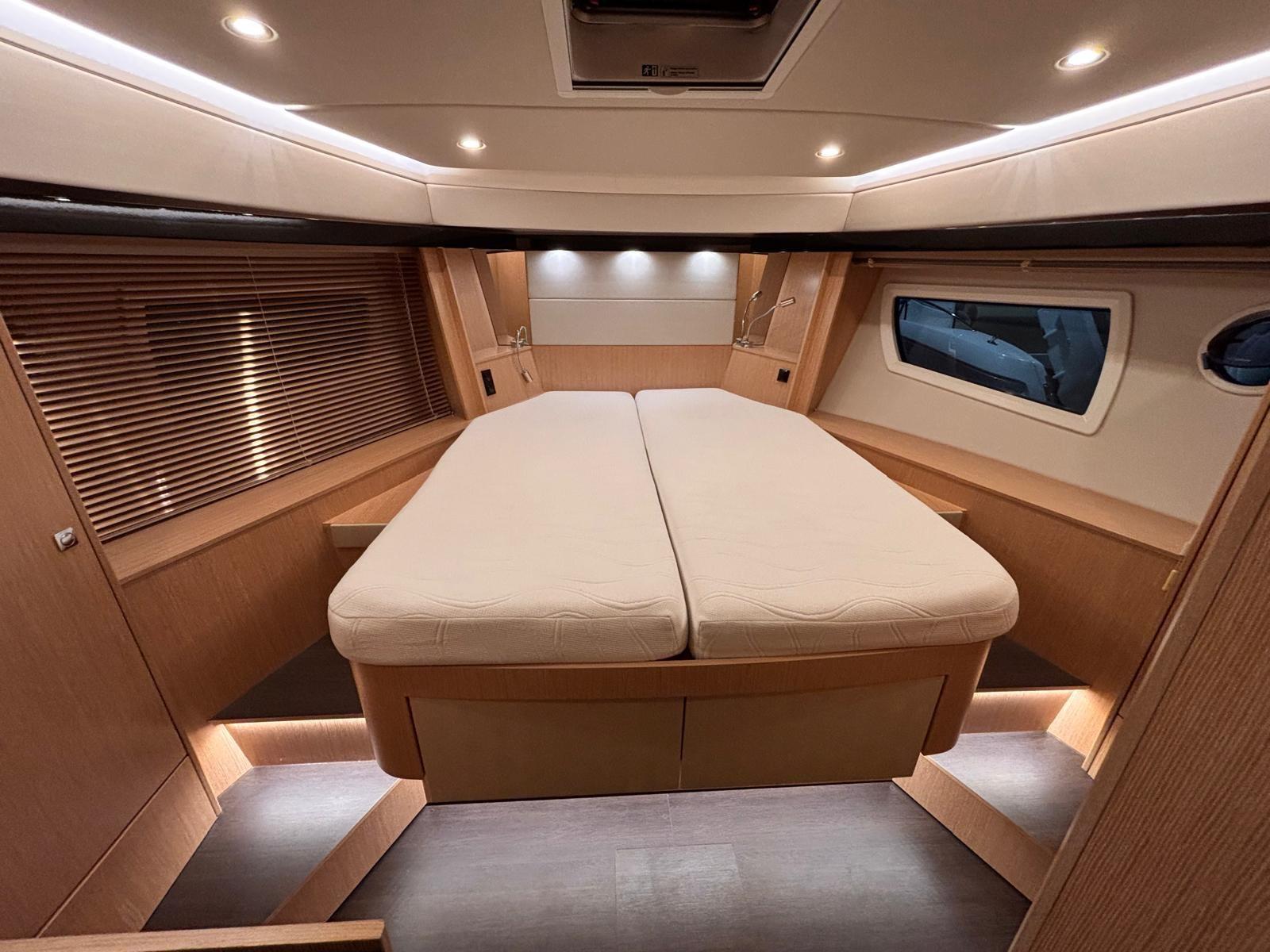 La barre a été conçue selon les critères les plus modernes pour assurer une vue d’ensemble parfaite de tous les instruments et commandes dans toutes les conditions de navigation. À la barre, il y a de la place pour deux, car le plaisir du luxe et du confort à bord d’un VIRTESS 420 doit vraiment être partagé.