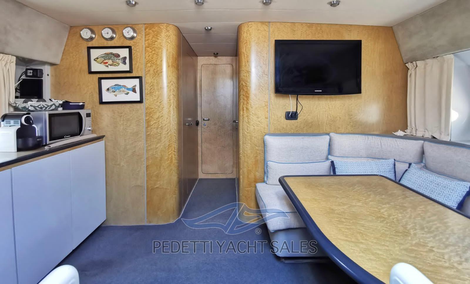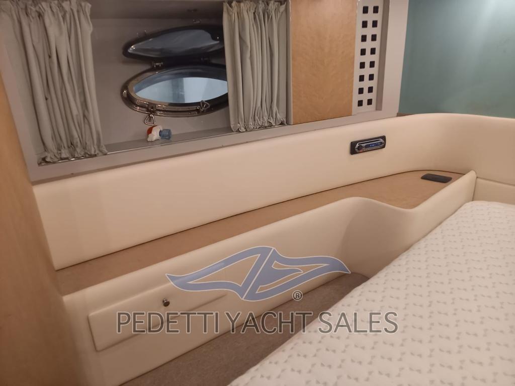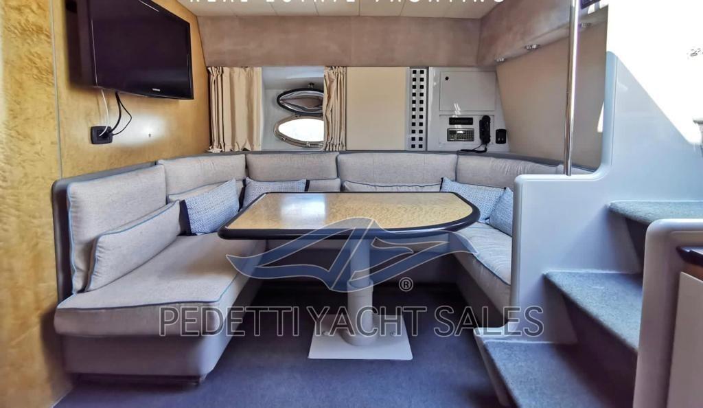 Alarme gaz, Alarme moteur, Alarme de pompe de cale, Eau sous pression, Douche de cockpit, Phare de poursuite, Éclairage de courtoisie, Défenses, Passerelle (idraulica), Pompe de Vidange du Réservoir d’Eaux Usées (tanica plastica), Pompe de cale automatique, Pompe de cale manuelle, Porte latérale, Prise de quai, Onduleur, Guindeau électrique, Echelle de bain, table de cockpit (abbattibile elettricamente), Corne, Winch électrique arrière, Winch électrique avant.