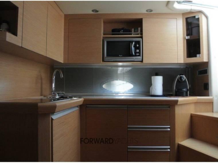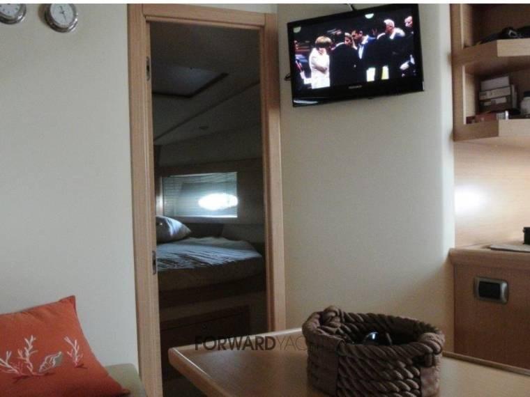 Moteur Volvo Penta, environ 590 heures moteur et full optional : propulseur d’étrave, générateur, climatisation, cockpit en teck, passerelle hydraulique, coussins pleins, dur à électrique, pilote automatique.
