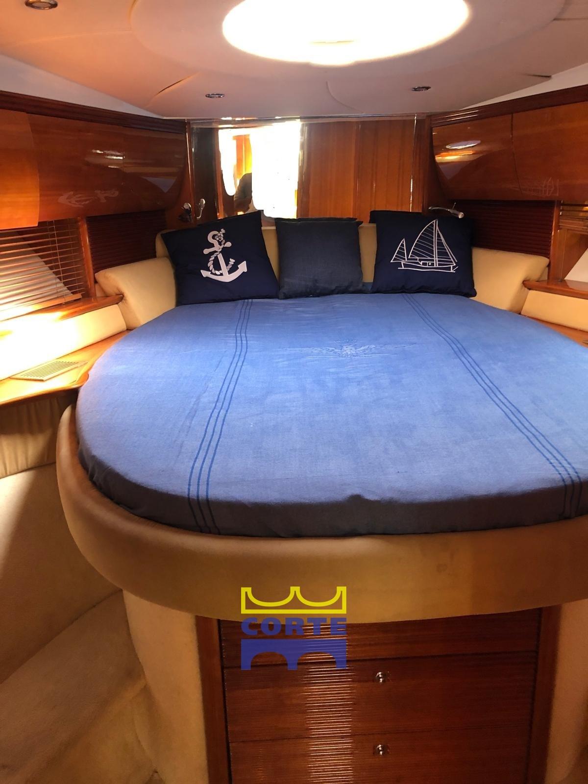Cabine principale double pleine poutre au centre du navire avec salle de bain.