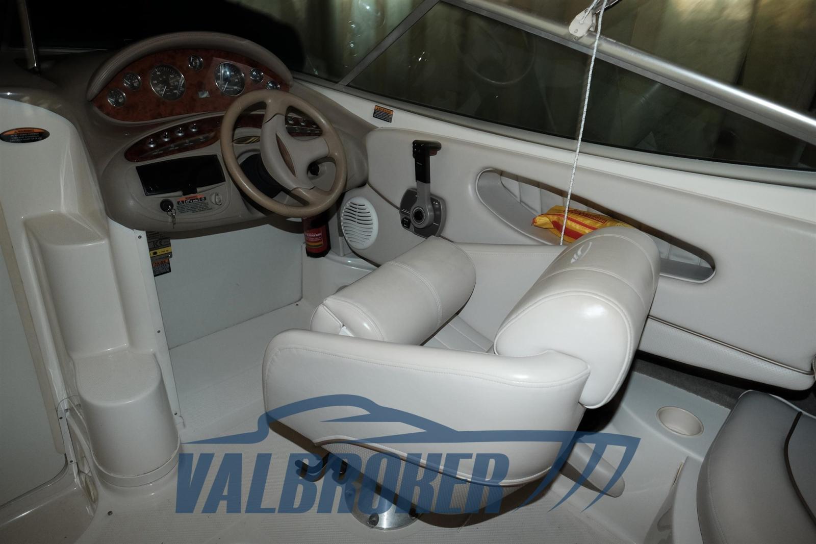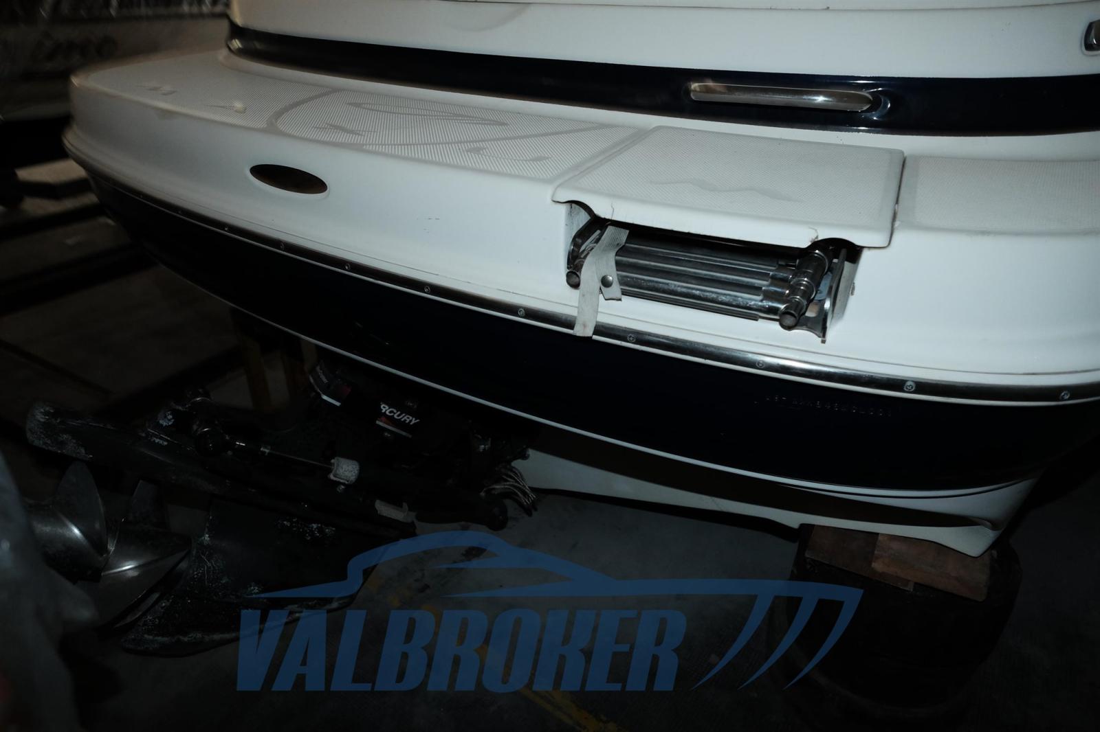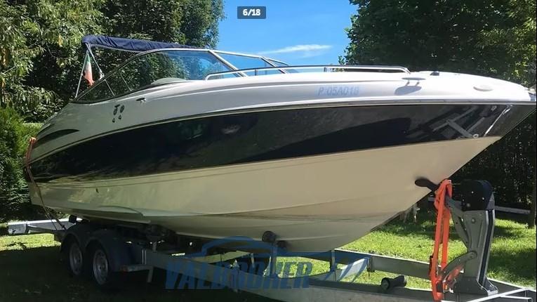 Chantier naval américain, Maxum Marine, année modèle 2001, propulsé par 1 X Mercruiser 350 MAG, V8 Essence, visible dans le hangar au bord du lac Majeur.