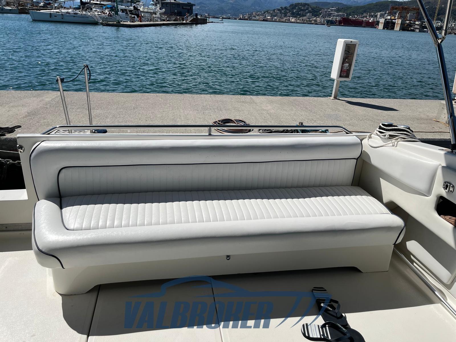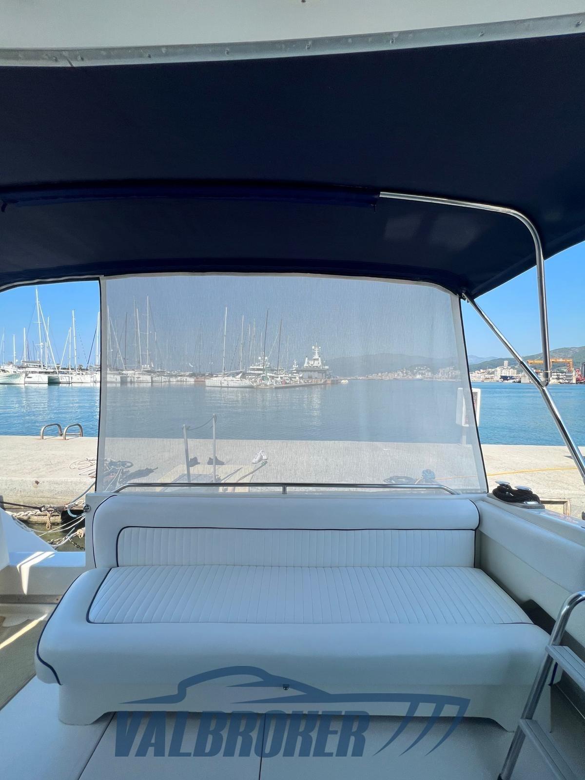 Ancre (50m), Eau sous pression, 4 Batteries (gel, nuove 2022), Douche de cockpit, Propulseur d'étrave (Quick), Phare de poursuite, Indicateurs de flaps (Bennett), Lavabo dans le cockpit, Éclairage de courtoisie, Plateforme arrière, Connexion eau sous pression à quai, Onduleur, Rollbar, Guindeau électrique, Echelle de bain.