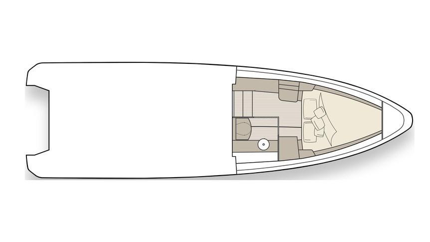 Coussins arrieres, Coussin avant, Tauds de fermeture T-Top (Canopy completo), Taud de siège (set completo copri sedili e divani), 2 Taud de soleil (prua e poppa con pali in carbonio), Rideaux (in cabina).