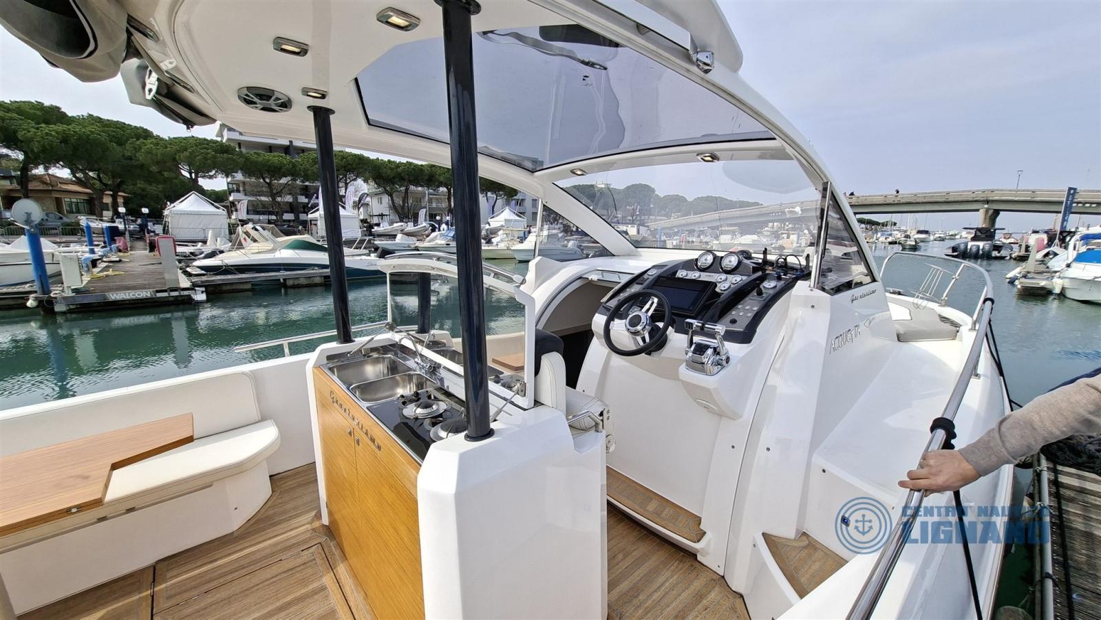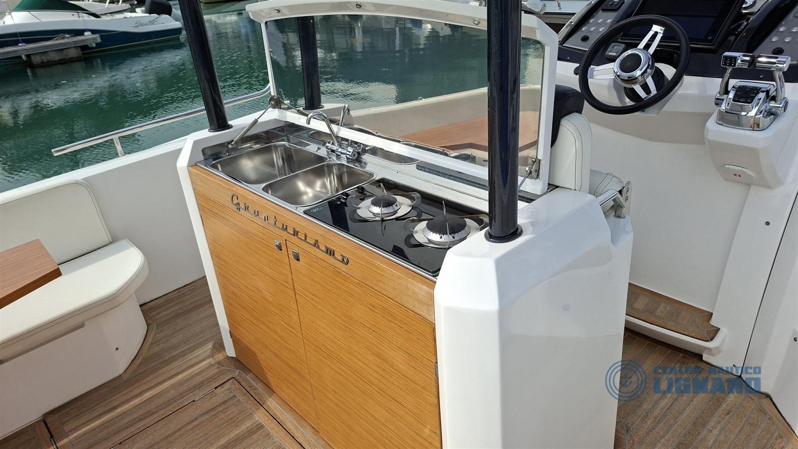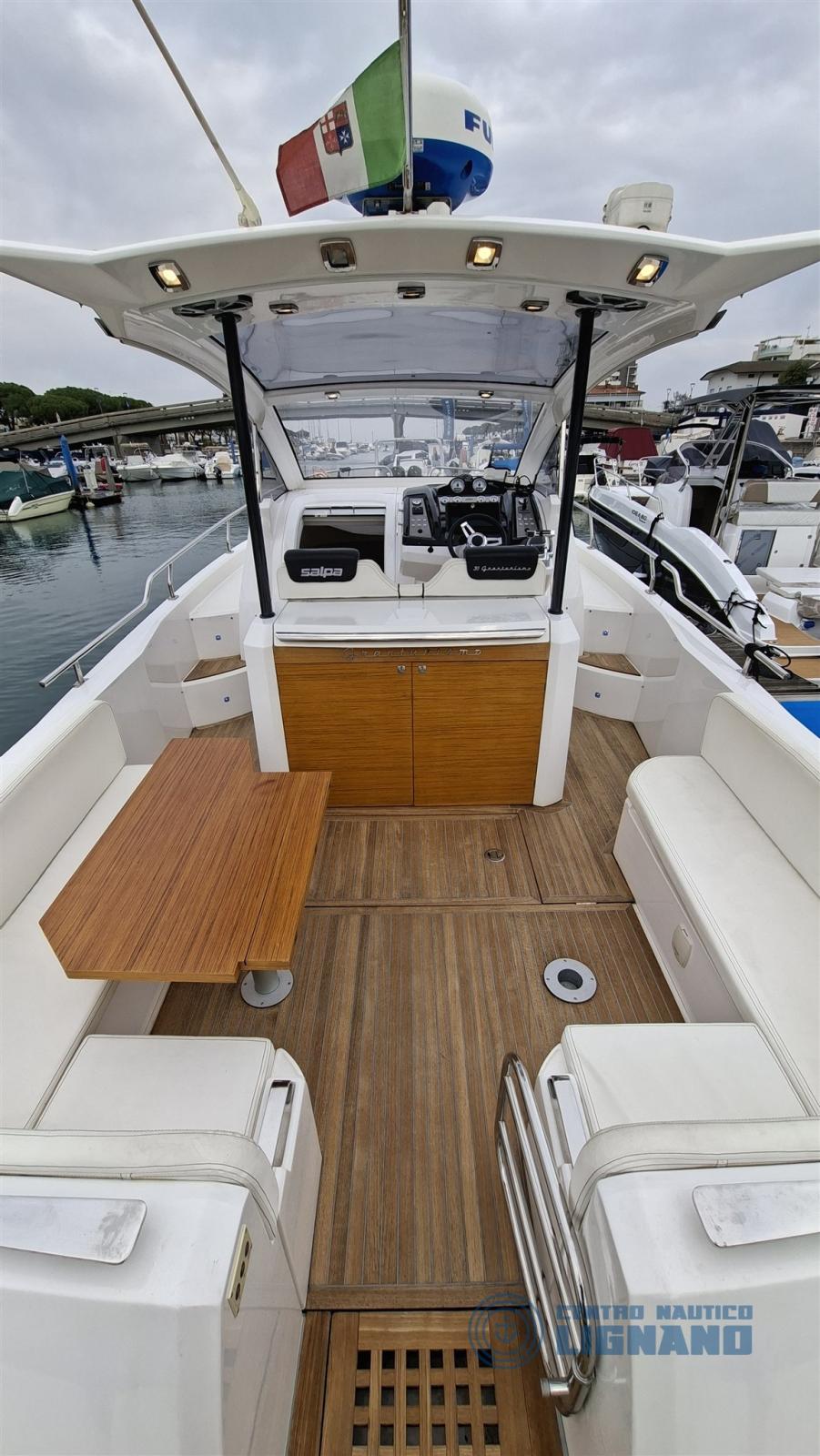 Le yacht Salpa 30 Gran Turismo (GT) est unique en son genre, parfait et prêt pour la saison. Ce bateau, au design moderne et avant-gardiste, mesure 9,90 mètres et fait 10 mètres au total, et à l’intérieur il peut accueillir jusqu’à 4 personnes. La salle de bain est séparée. À l’extérieur, la véritable âme de la 30 GT se révèle : une configuration estivale mais en même temps protégée du vent par un grand toit rigide. Le cockpit est large et spacieux et le nouveau parquet en teck est parfait. Le moteur est enfermé dans une salle des machines propre et soignée et les deux Mercruiser 5.0L MPI sont prêts pour la saison. Moteurs silencieux dans une construction solide et insonorisée. La transmission est un modèle Bravo III à double hélice et propulsion arrière, tout juste révisé et prêt. La 30 GT est un petit yacht pour la famille, rempli d’espace de rangement, de casiers et de casiers. Le bateau est équipé d’un système côtier 220V, d’une instrumentation complète de navigation, de feux colorés de courtoisie et de feux sous-marins pour la nuit.