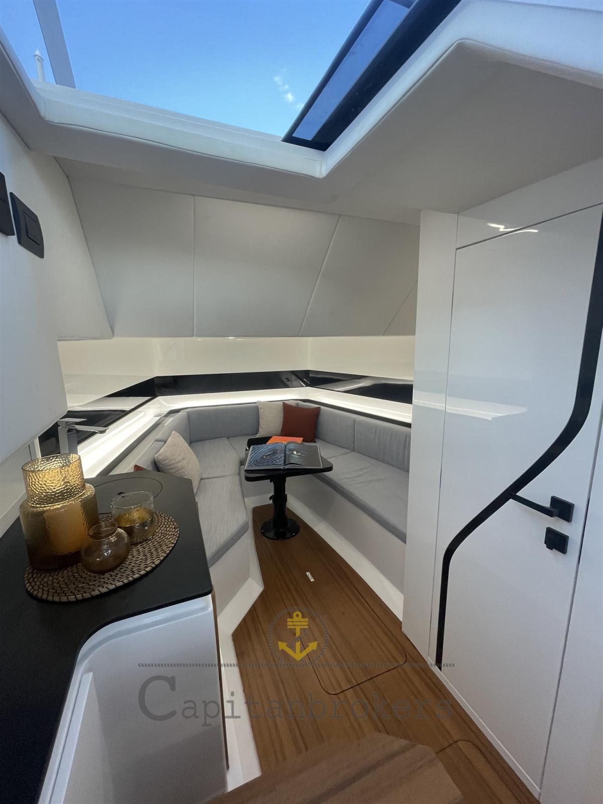 • Grand espace sur le pont avant• Promenade vers le pont avant avec marches• Salon central - avec une grande table• Table de cockpit faite à la main avec pied de table Hi-Lo et coussin de remplissage• Console de pilotage ergonomique avec équipement de navigation et sièges pilotes personnalisés.• Grand bain de soleil arrière avec dossier mobile• Coussin de soleil sur le pont avant*- Rideau*• 2 réfrigérateurs de cockpit sous le siège du bar gauche*• Bimini* • T-TOP*• Prise de cockpit Quai 220 V avec chargeur inclus. Câble d’alimentation à quai*