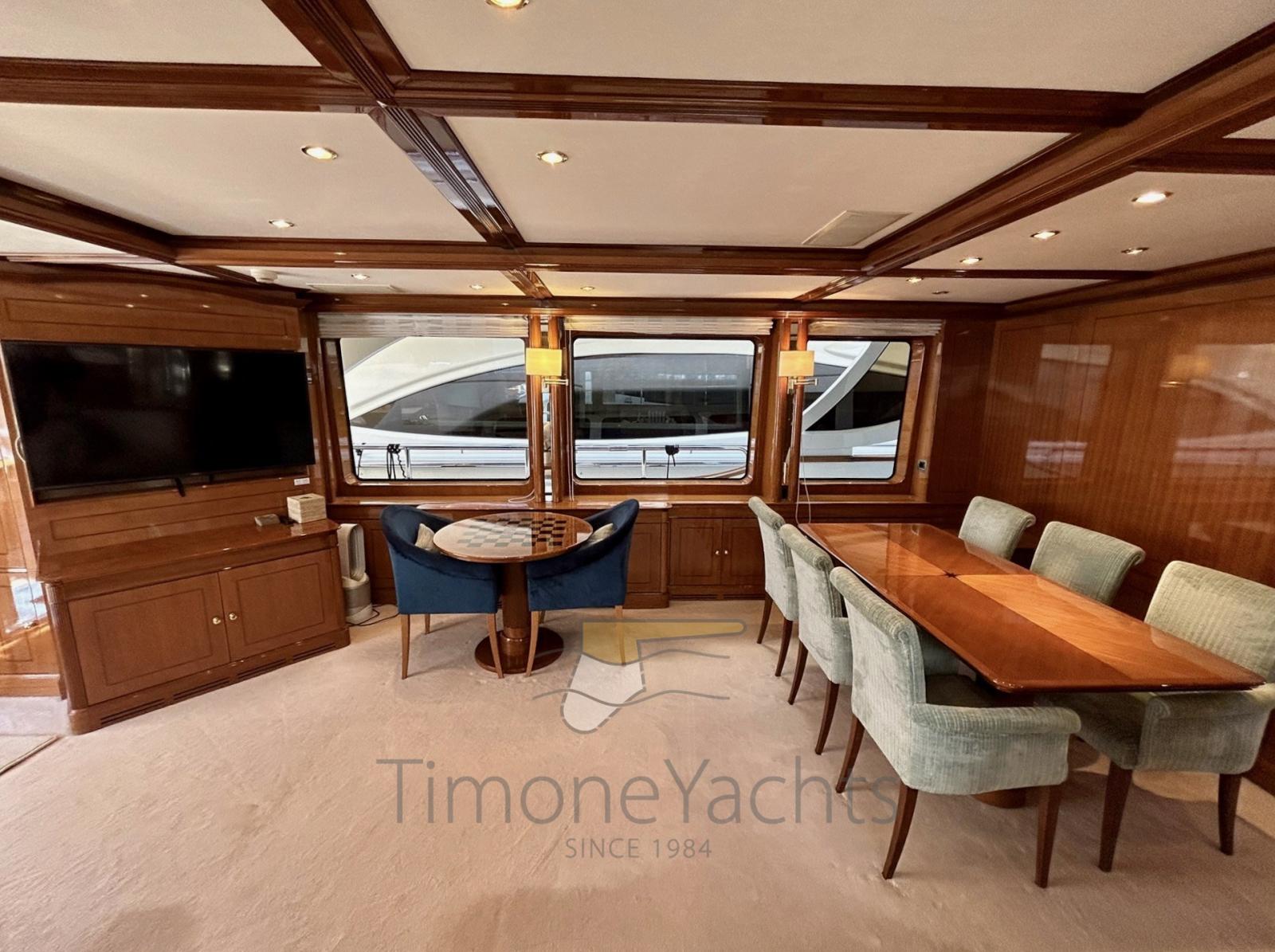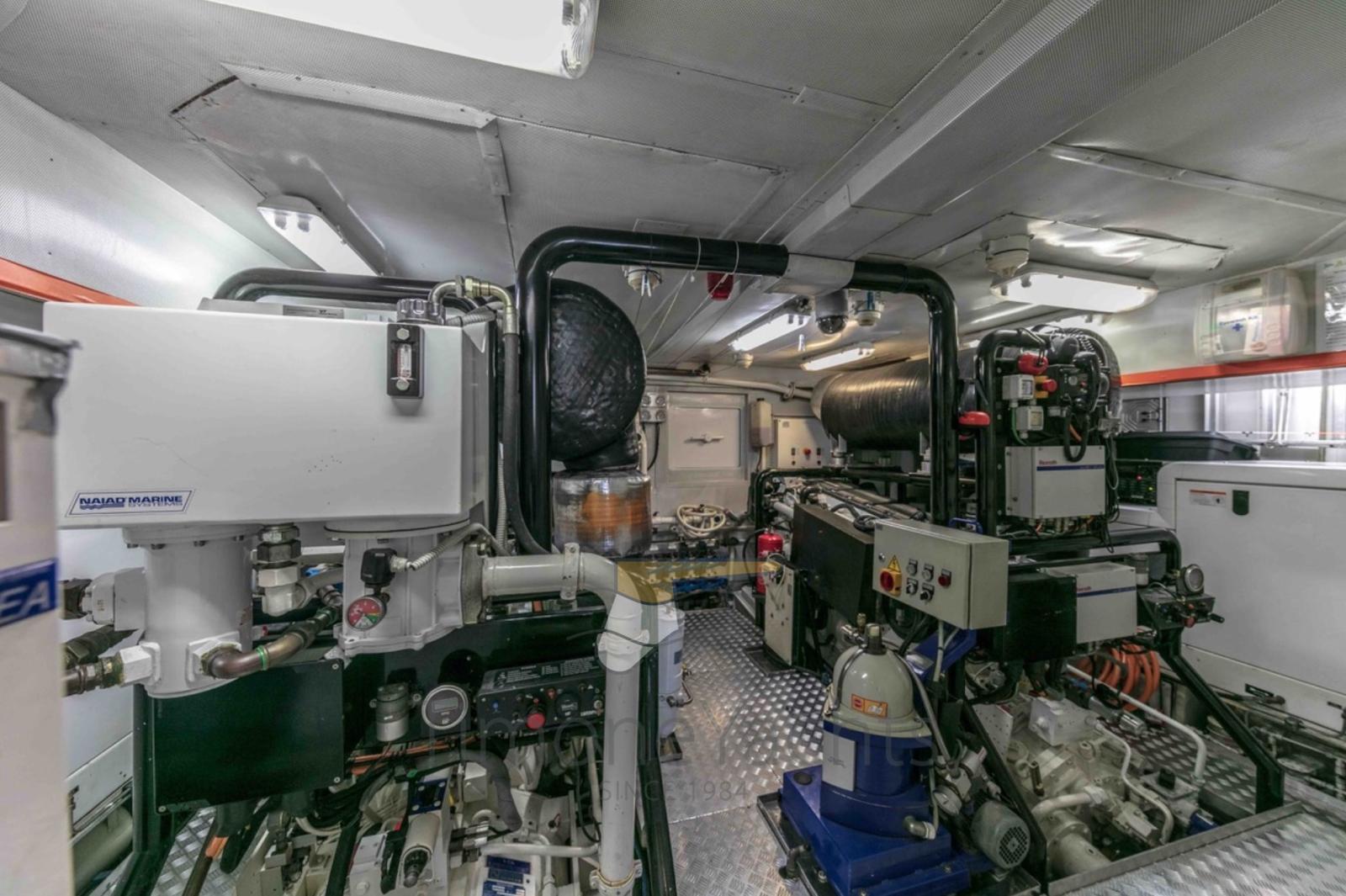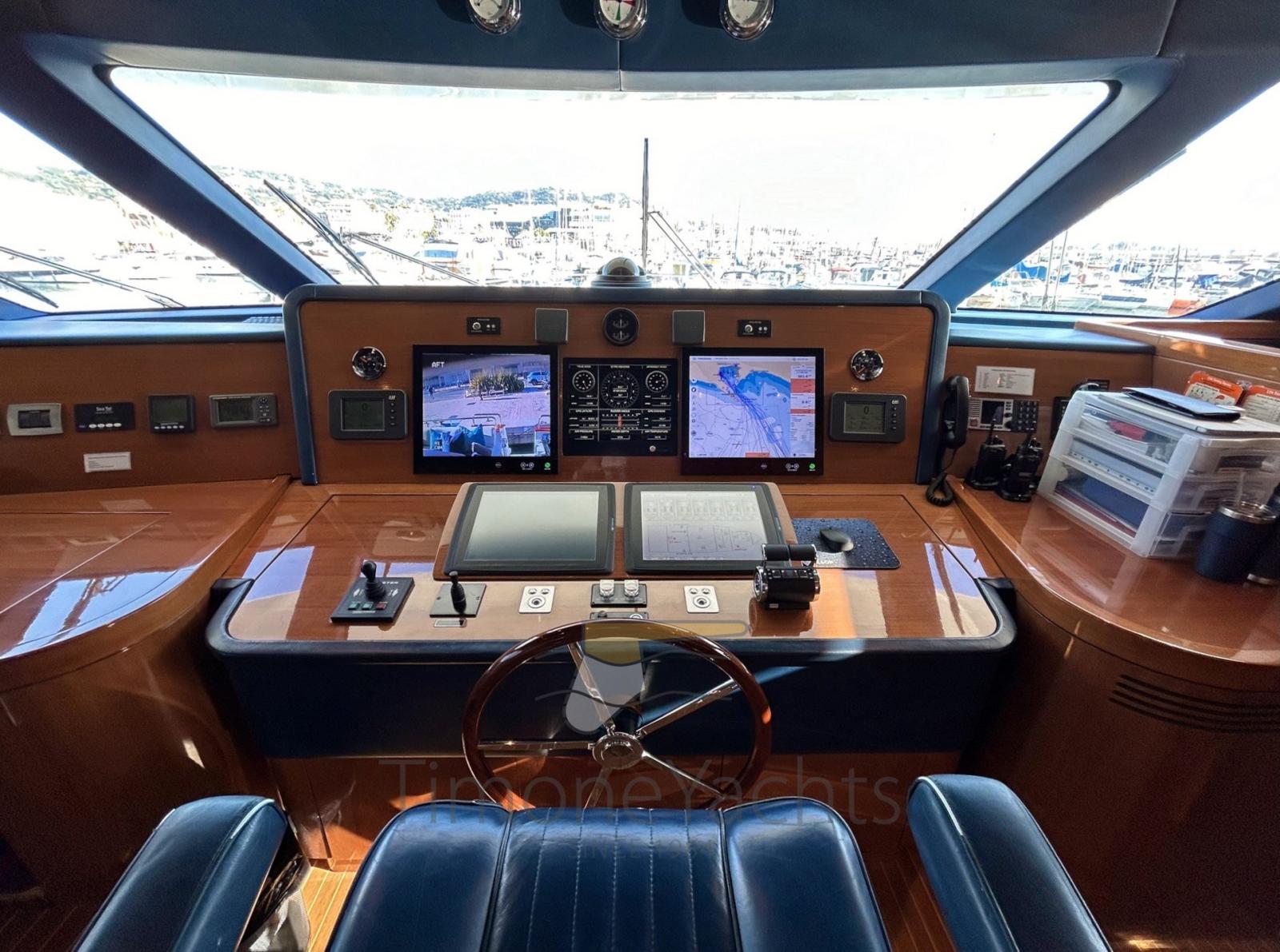 Cette Navetta intemporelle est stabilisée, et la passerelle aérienne a été modernisée en retirant la grue (disponible) pour créer un salon plus grand dans la section arrière de la passerelle. Vraiment époustouflant.