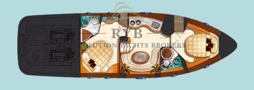 Alarme moteur, Eau sous pression, Douche de cockpit, Flaps hydrauliques, Garage à annexe, Passerelle, Plateforme arrière, Pompe de cale automatique, Pompe de cale manuelle, Cockpit en teck, Prise de quai, Guindeau électrique, Echelle de bain, table de cockpit.