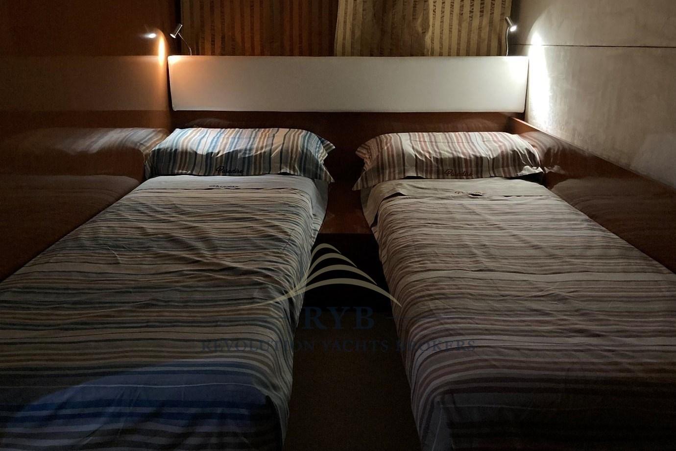 Le bateau est en excellent état général, toujours entretenu avec soin et un entretien régulier des moteurs, générateurs et propulseurs arrière. Équipé d’un joystick avec ancre électronique et du système VesselView SmartCraft, il offre une grande facilité d’utilisation et de contrôle. À bord, de nombreuses mises à jour et améliorations ont été réalisées ces dernières années, ce qui en fait un bateau complet, actuel et pleinement fonctionnel. Un intérieur bien entretenu avec des commodes supplémentaires et des coussins rénovés.