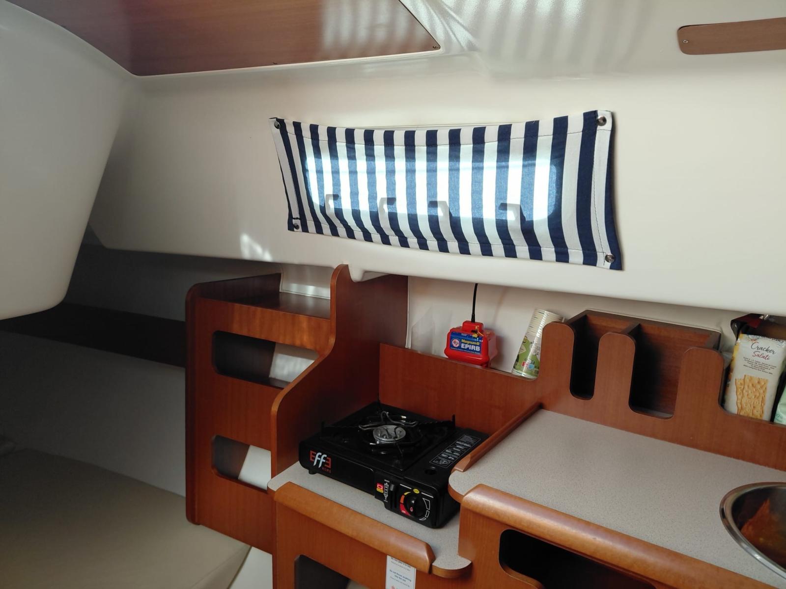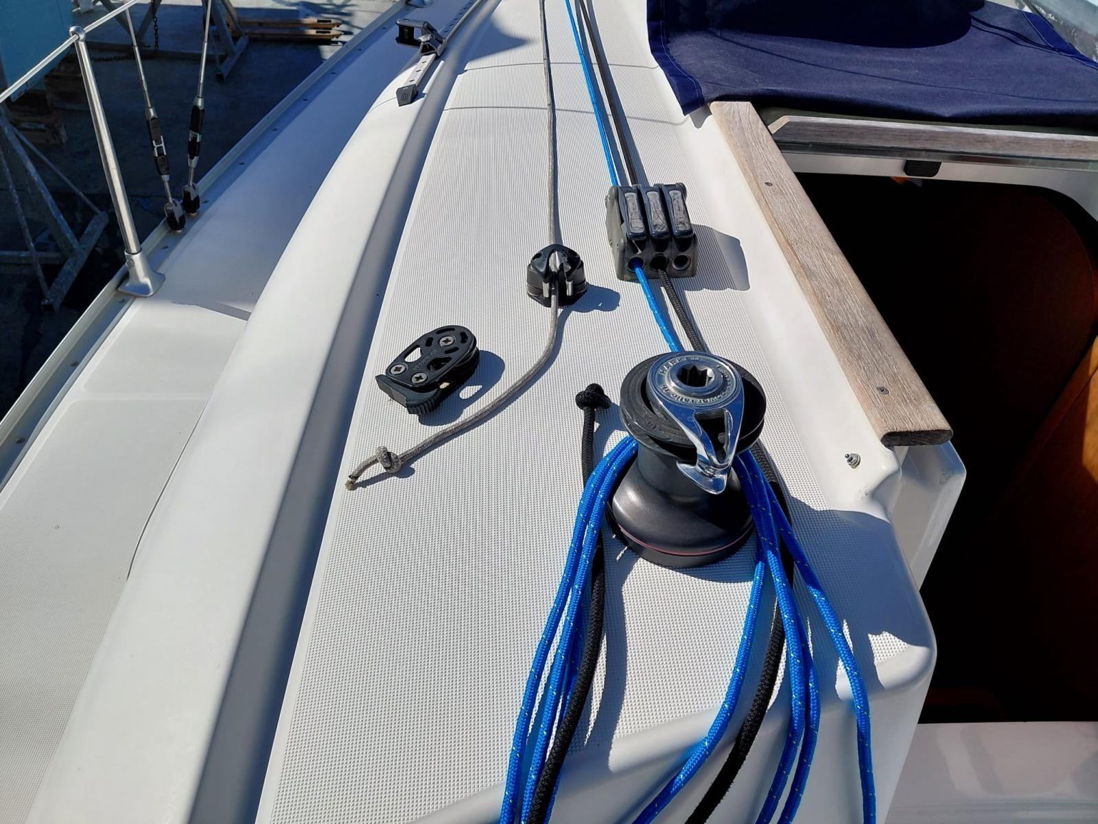 Ancre (5 kg con 30 m catena del 6), Eau sous pression, 2 Batteries (1 servizi 80amph 1 motore 70 amph), Câble d’alimentation à quai, Douche de cockpit, Panneau solaire (70 amp), 4 Défenses, Pompe de cale manuelle, Prise de quai, Guindeau électrique, Gréement monotoron, Echelle de bain, table de cockpit, Table pliante de salon, 2 Winch.