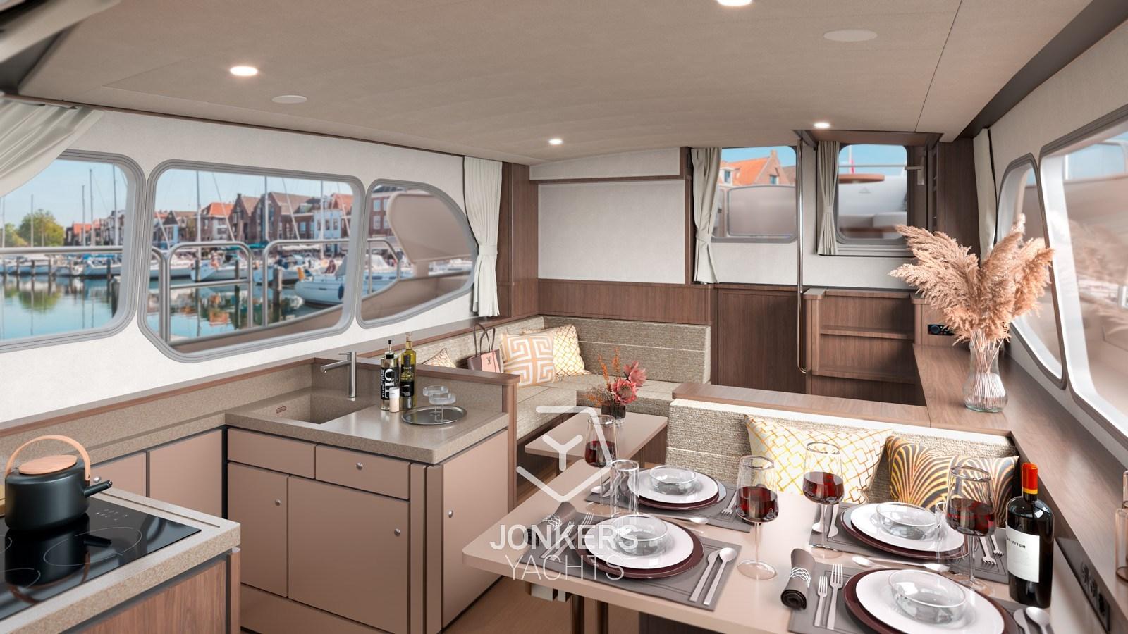 De grandes fenêtres illuminent l’intérieur de lumière naturelle, renforçant l’impression d’espace et mettant en valeur le nouveau design. La cabine avant bénéficie de hublots et de trappes supplémentaires sur le pont, assurant une excellente ventilation et une excellente luminosité.