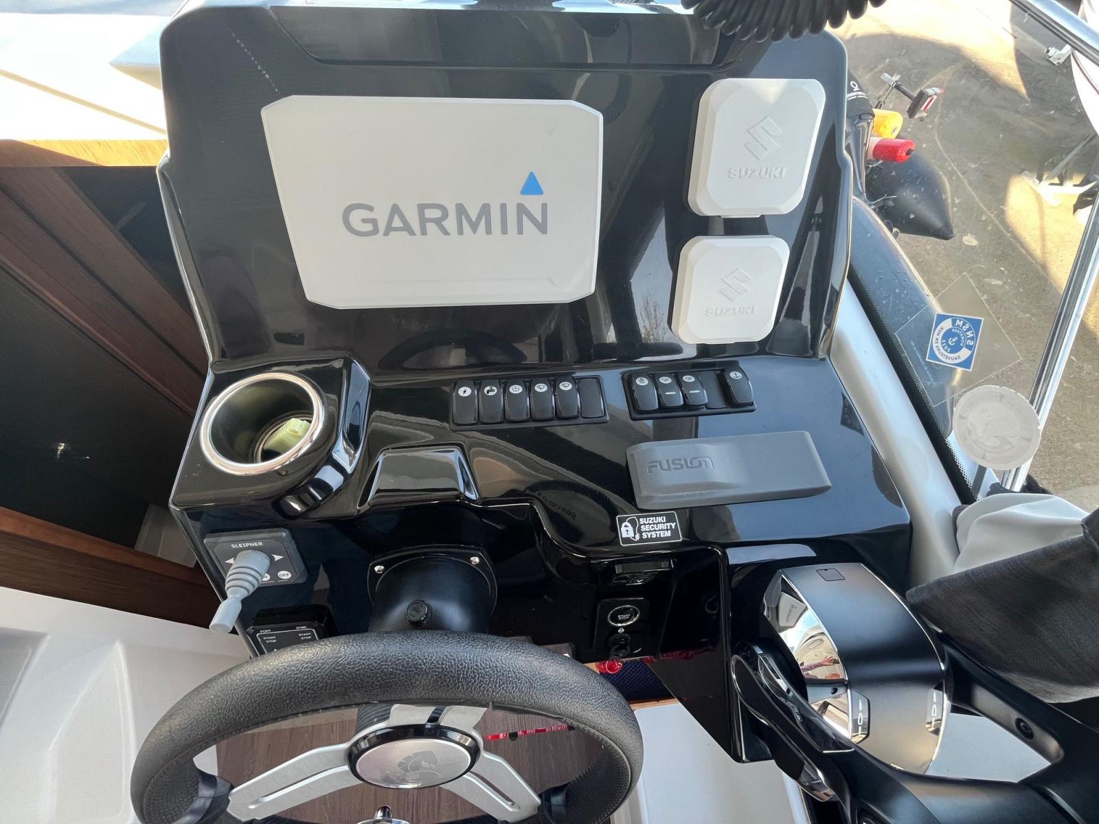 Version Sellerie Elegance, Finition Confort (Incluant table intérieure, vitre latérale babord coulissante, 2eme essuie-glace et lave glace, Cale Pieds Pilote, 2 Portes-cannes, porte-gobelet, Table de cockpit polyester, Rideaux intérieurs, Plateformes de bain rapportées, Guindeau électrique et plancher Chène brun en timonerie), Pack cuisine équipée Gaz (Incluant Réchaud Fixe 2 Feux, Réfrigerateur 60L, Abbattant en verre de protection du plan de travail, Evier inox), Pack électronique GARMIN 92 xsv avec sonde et cartographie, sytème audio FUSION avec 4 Haut-parleurs, Taud de soleil Inox et Fermeture de cockpit CADET Grey, Carré de cockpit convertible bain de soleil, Propulseur d'étrave, Chauffe-eau 25L, Circuit électrique complet 220V, Complément de couchage dans le carré, Meubles de rangement haut dans la cabine avant, Système de trim auto Zipwake, VHF Garmin 215, Kit mouillage complet avec ancre FOB 14Kg et 35M de chaine + 40M de bout , armement de sécurité semi-hautirer 4 personnes avec radeau de survie Plastimo Coastal 4 places.