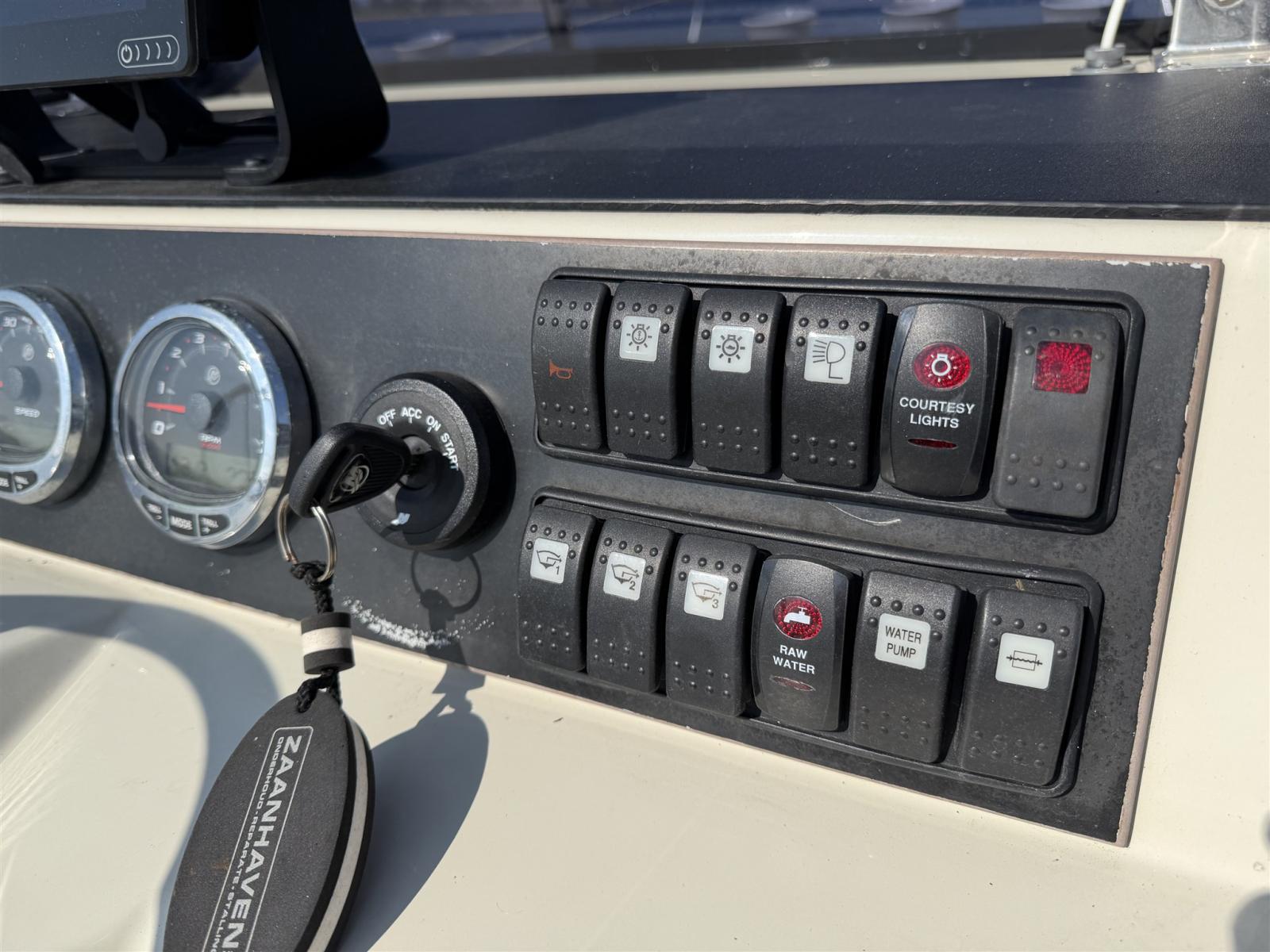 Commande électrique, Moniteur, Cartes et guides, Lecteur de cartes (Raymarine), Panneau de commande, Radio VHF (Icom), Sondeur.