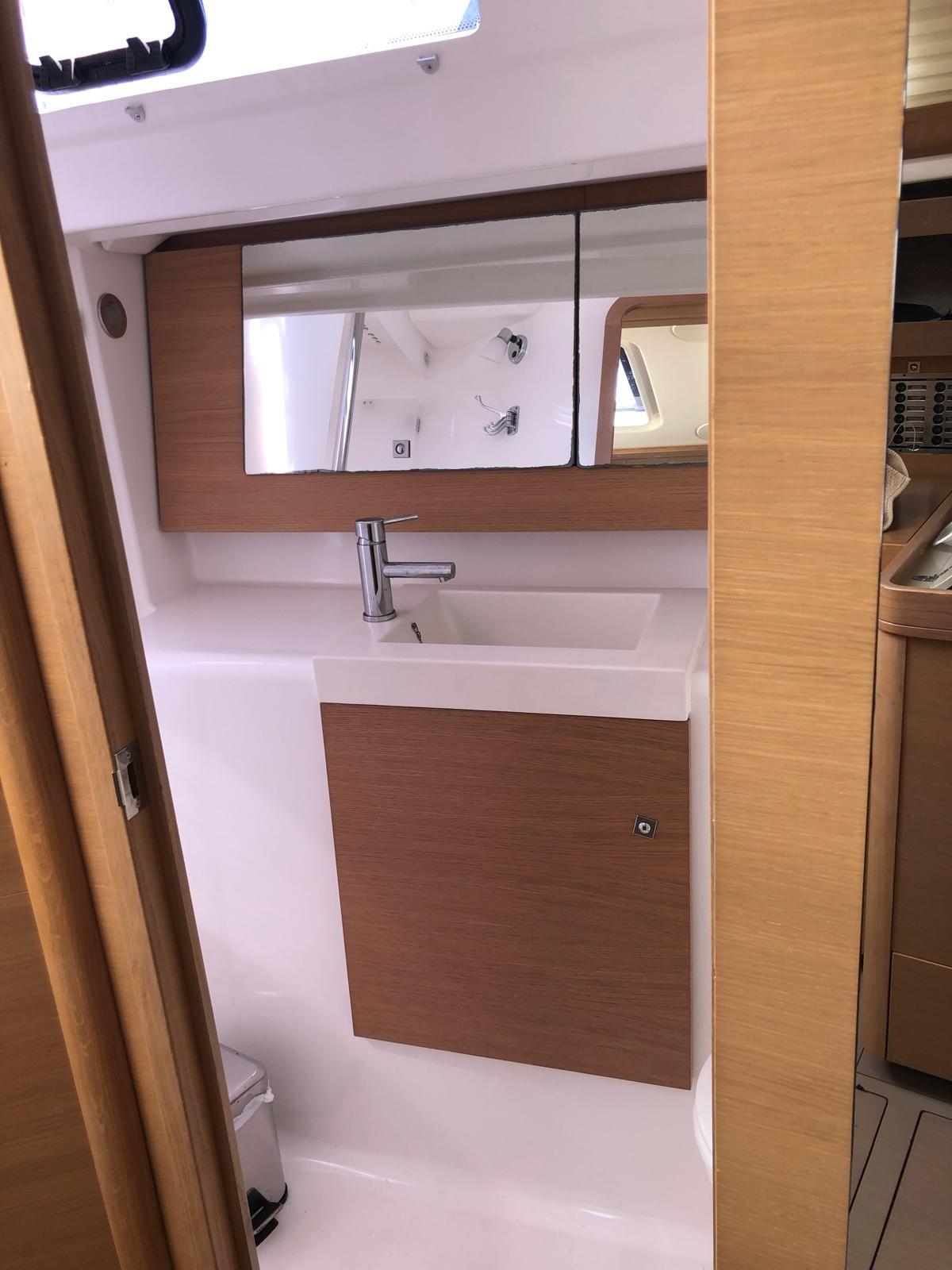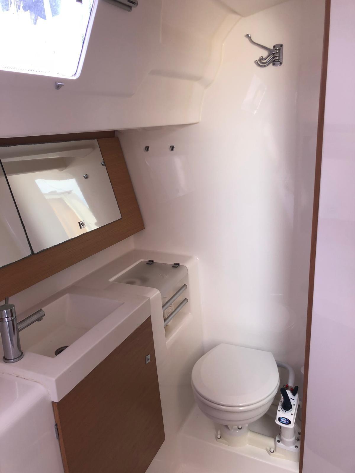 Ancre (Delta con 60 mt di catena calibrata 8 mm), 5 Batteries (2 servizi, 2 bow trust, 1 motore , con ripartitore di carica), Douche de cockpit (calda/fredda), Double barre à roue, Propulseur d'étrave (a scomparsa con caricabatterie dedicato), Éclairage de courtoisie, Moteur hors-bord pour annexe (Honda 2.3 hp), 8 Défenses, Passerelle (ripiegabile), Plateforme arrière, Pompe de cale manuelle, Pompe à Eau de Mer (in cucina), Prise de quai, Connexion eau sous pression à quai, Guindeau électrique (con telecomando), Gréement monotoron, Echelle de bain (Scaletta telescopica e maniglia in acciaio sulla piattaforma), Chaise support HB, table de cockpit, Table pliante de salon (2 posti letto comodi), Annexe (Zodiac Cadet 200), 4 Winch.