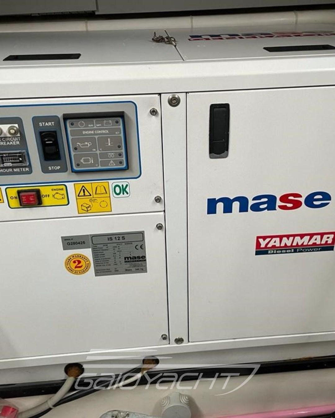 Ouverture du compartiment moteur électrique, Eau sous pression, 5 Batteries (2 batterie servizi, 2 batterie motori, 1 batteria elica di prua), Douche de cockpit, Phare de poursuite, Garage à annexe, Hard top (Elettrico), Extincteur(s) fixe(s) (Sala motori), Lavabo dans le cockpit, Éclairage de courtoisie, Spots sous-marins, Passerelle (Telescopica), Porte latérale, Cockpit en teck, Prise de quai, Connexion eau sous pression à quai, Guindeau électrique, Echelle de bain, Selles pour Annexe, table de cockpit, Table pliante de salon, Annexe (Motore Yamaha hp15).