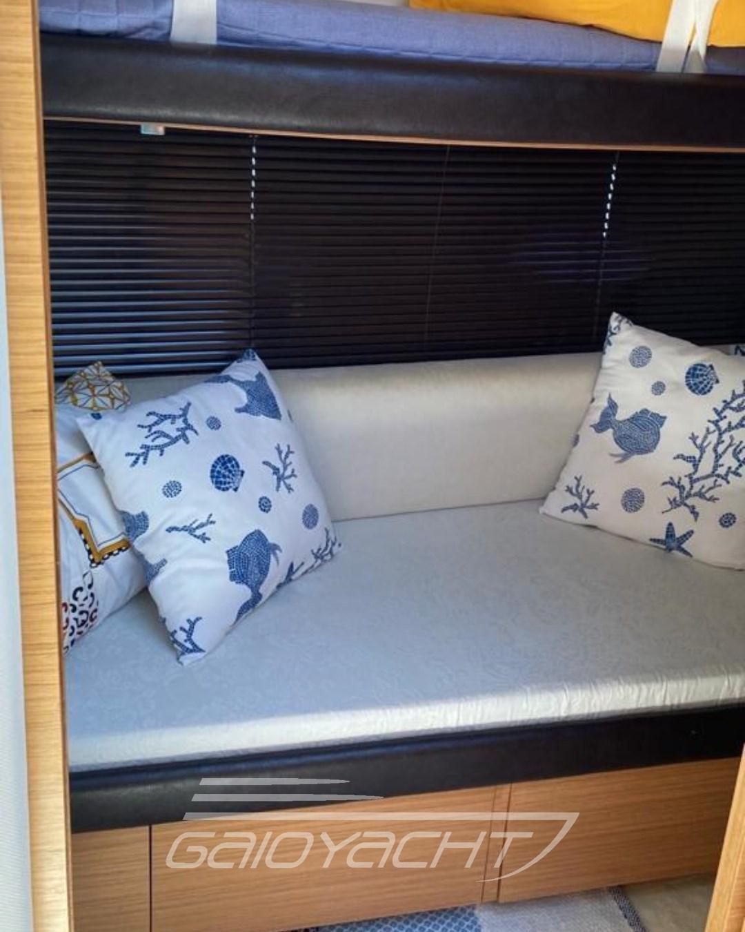 Taud de cockpit, Sellerie complète, Coussins arrieres, Coussin avant, sellerie de cockpit, Rideaux occultants (Copertura tender), Tauds de pare-brise, Taud de console, Taud électrique (Pozzetto + tenda privacy pozzetto), Moustiquaires.