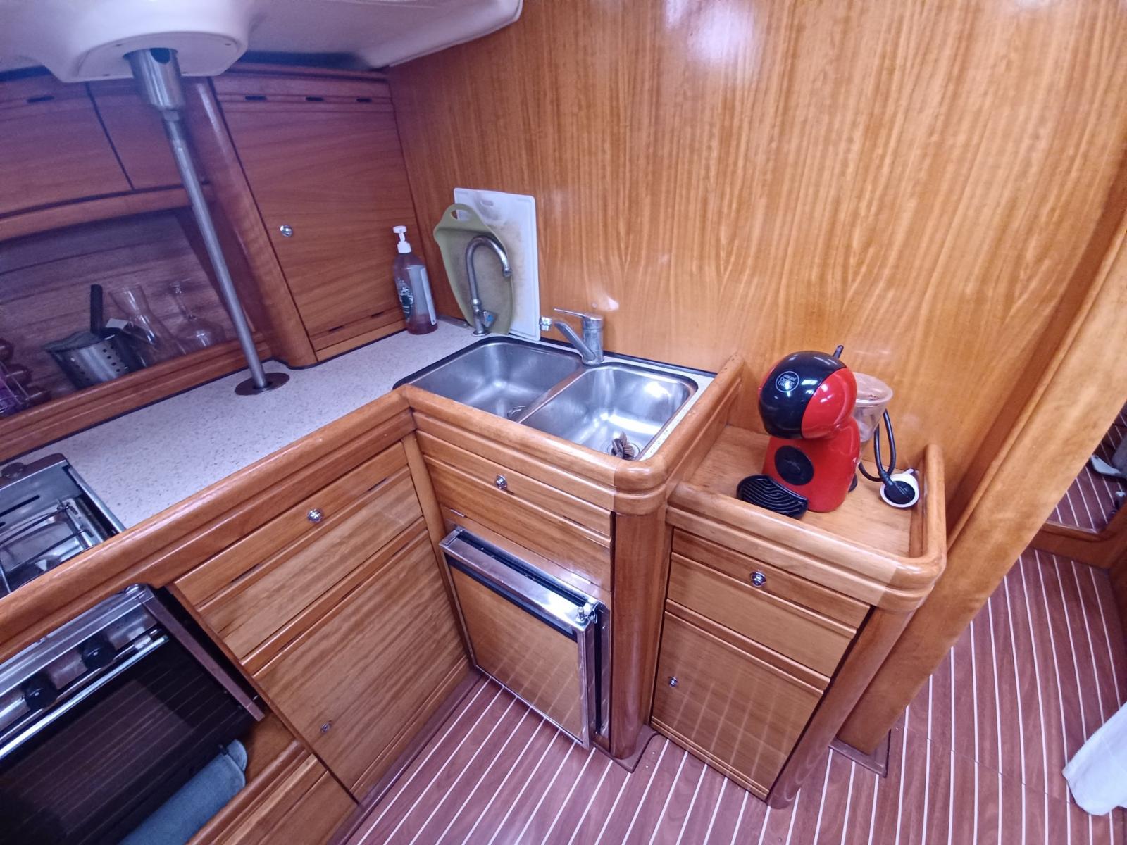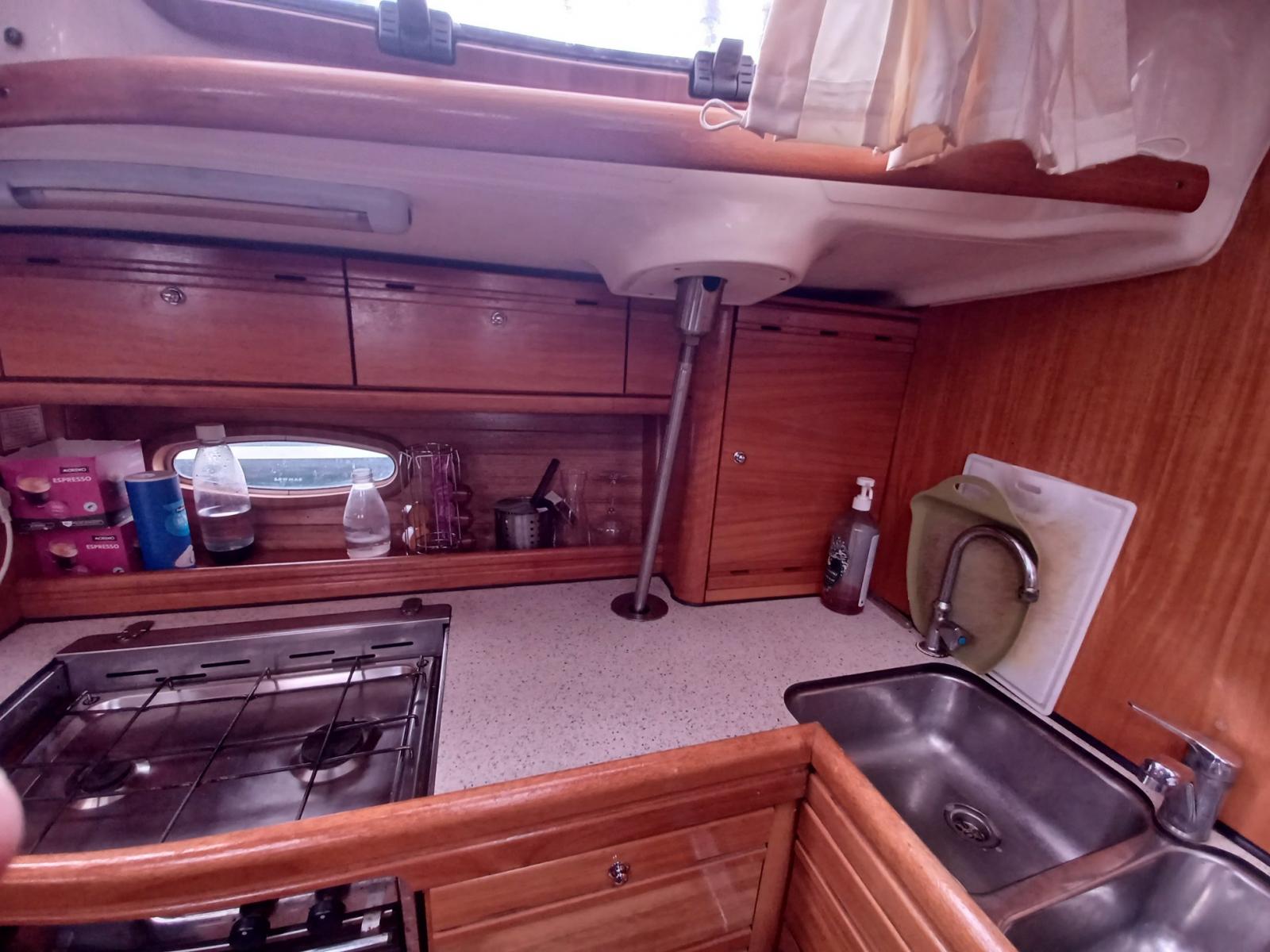 CONFORT : eau chaude sous pression, gazinière 2 feux + four, 2 réfrigérateurs, nombreux panneaux de pont ouvrants, très belle ébénisterie bien conservée.