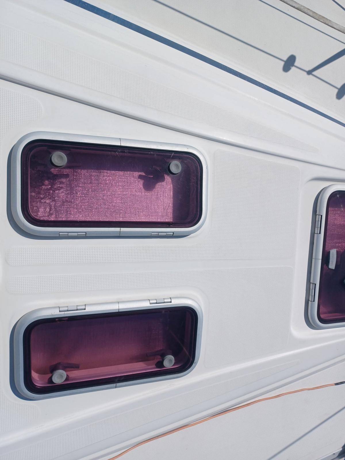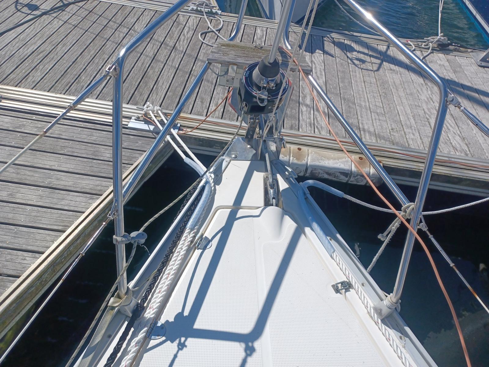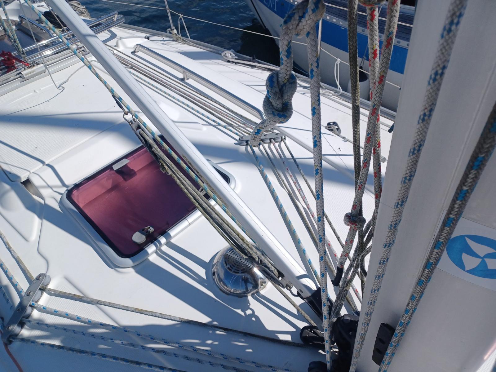 capote de roof neuve, jupe arrière avec échelle de bain, bossoirs inox Gyro-fixe.