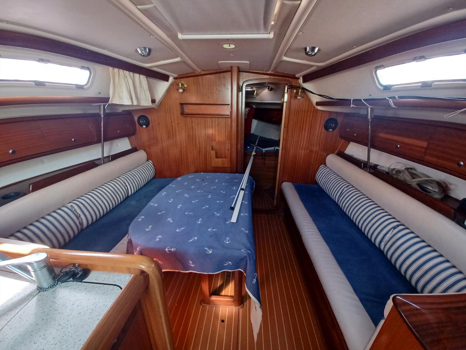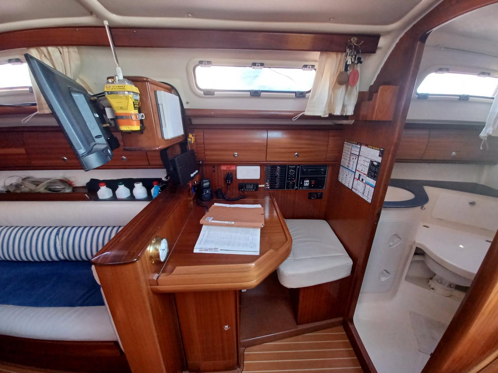 AMENAGEMENT : 2 cabines doubles, carré spacieux, cuisine, table à cartes, 1 salle d’eau (WC, lavabo, douche.