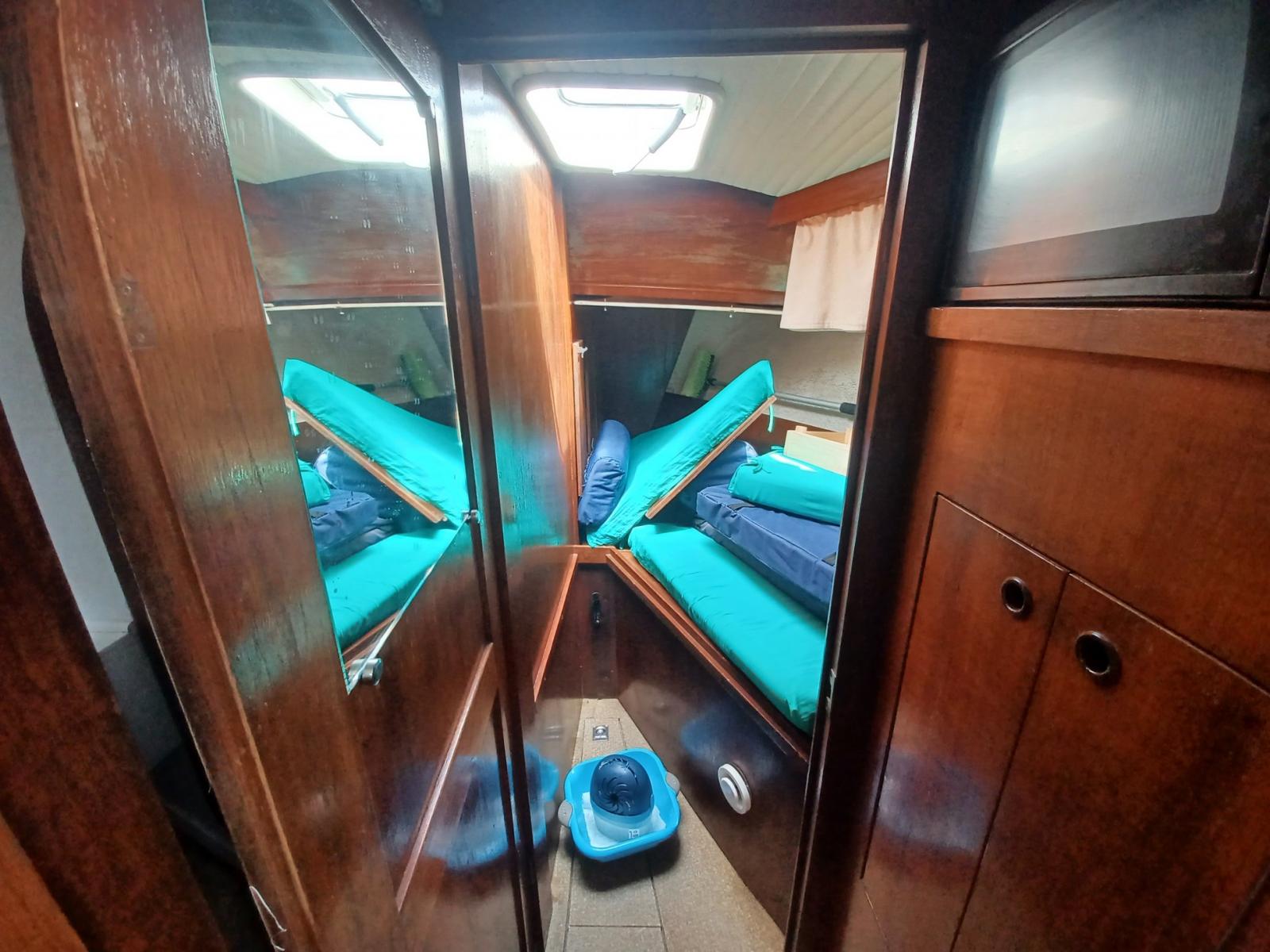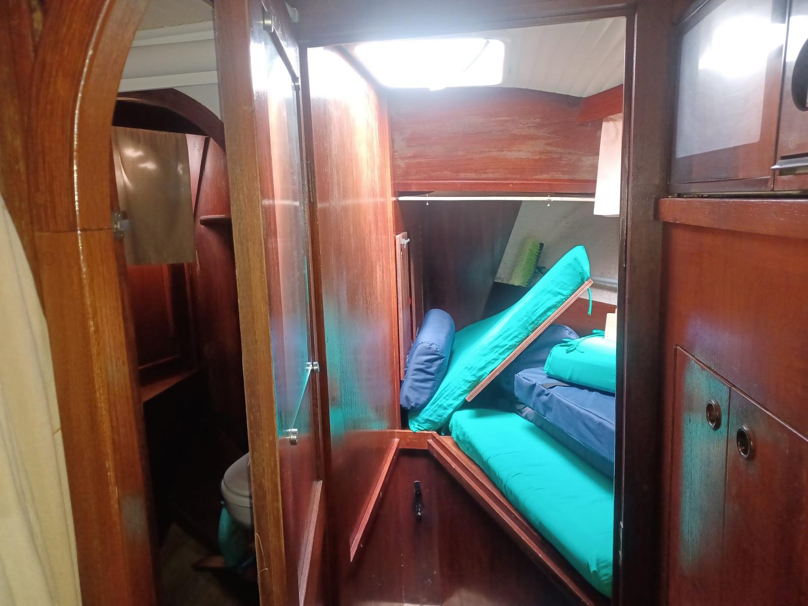 AMENAGEMENT : 2 cabies doubles, carré avec cuisine en coursive, timonerie avec carré, salle d’eau (WC, douche, lavabo) à l’avant babord.