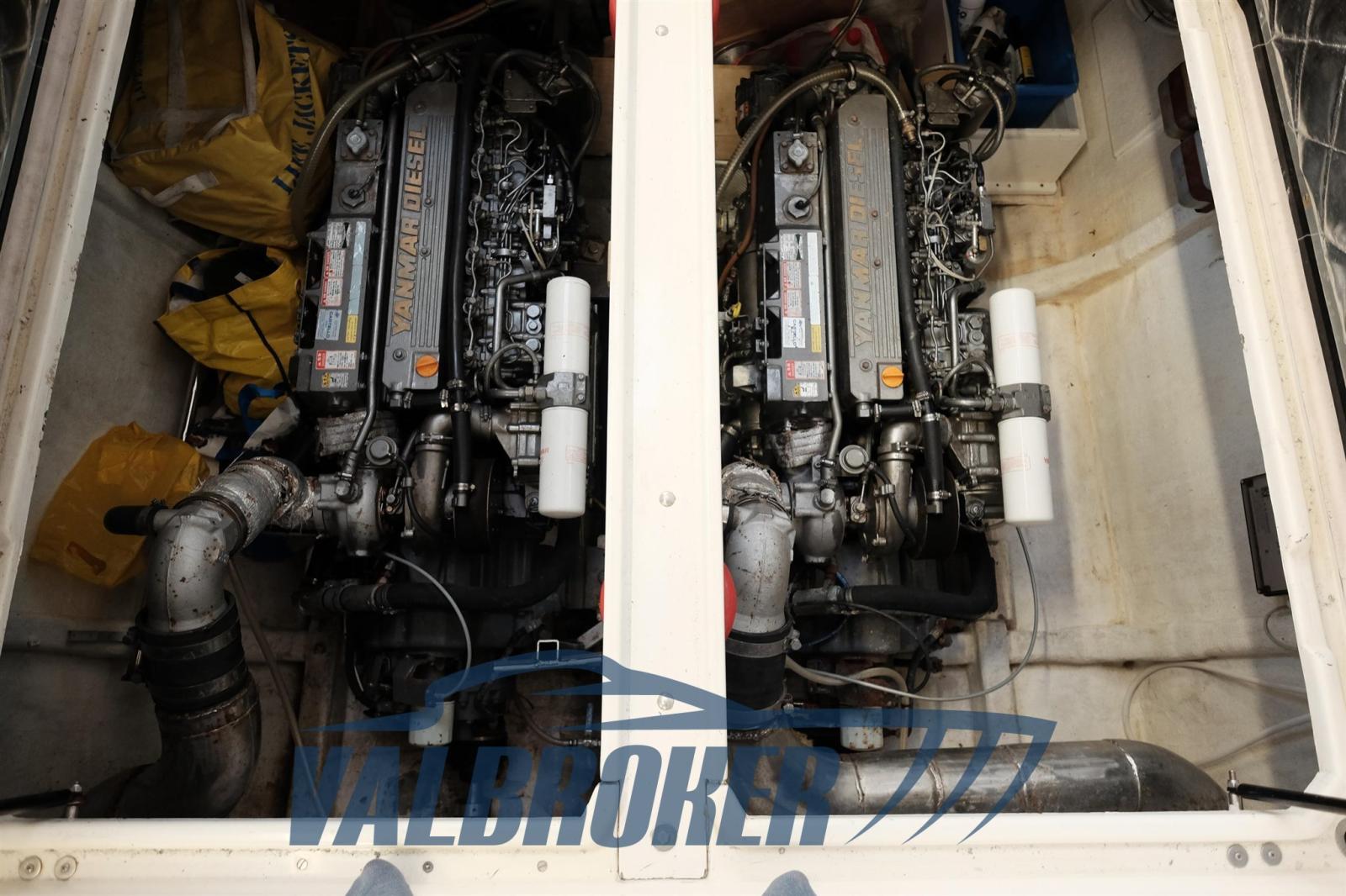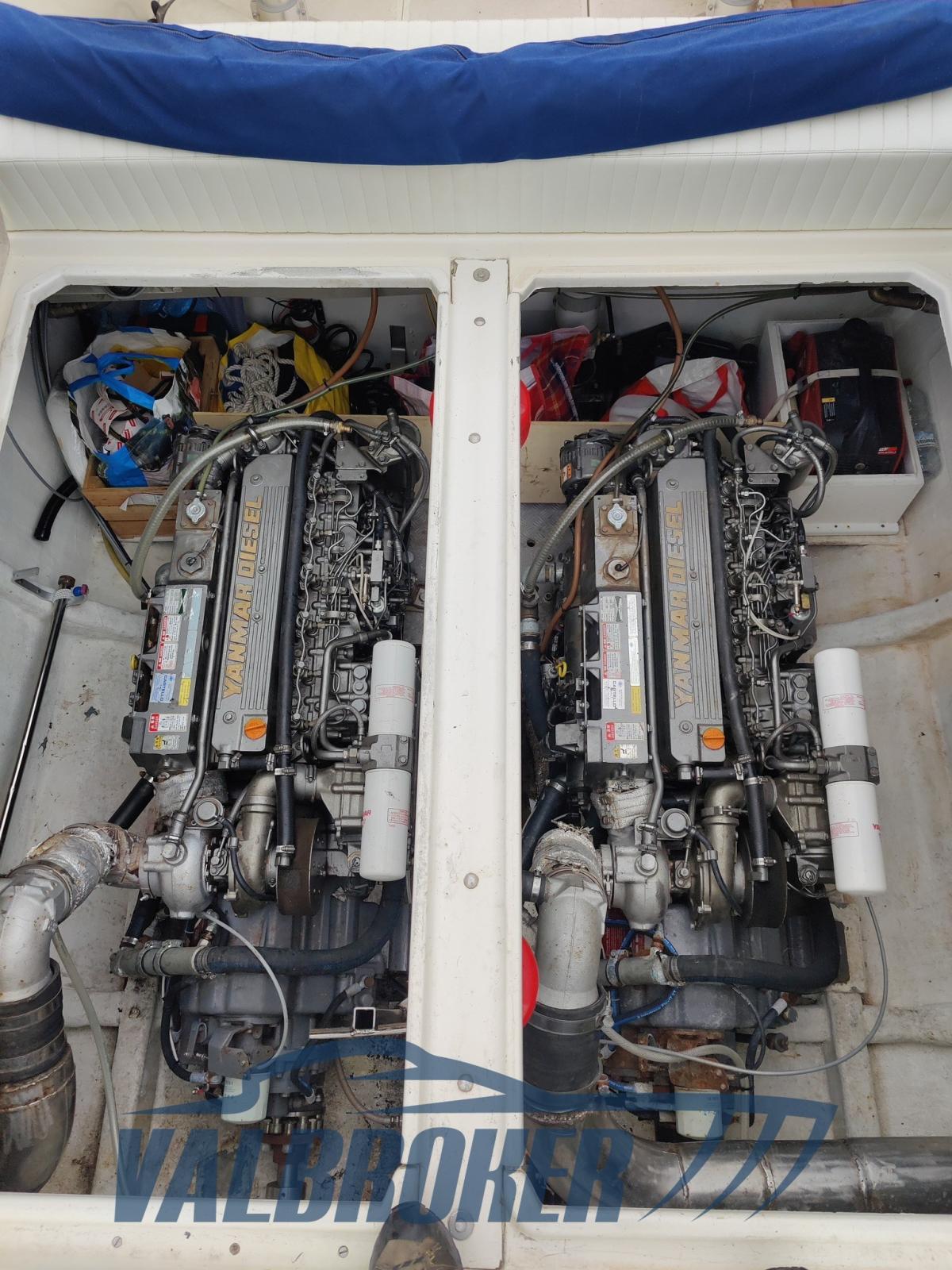 Le Tecnomar OFFSHORE 40 a été entièrement réaménagé entre 2020 et 2021. Remotorisé avec 2 Yanmar de 440 ch avec seulement 350 heures de moteur et des hélices de surface. Un abri dans le cabanon.