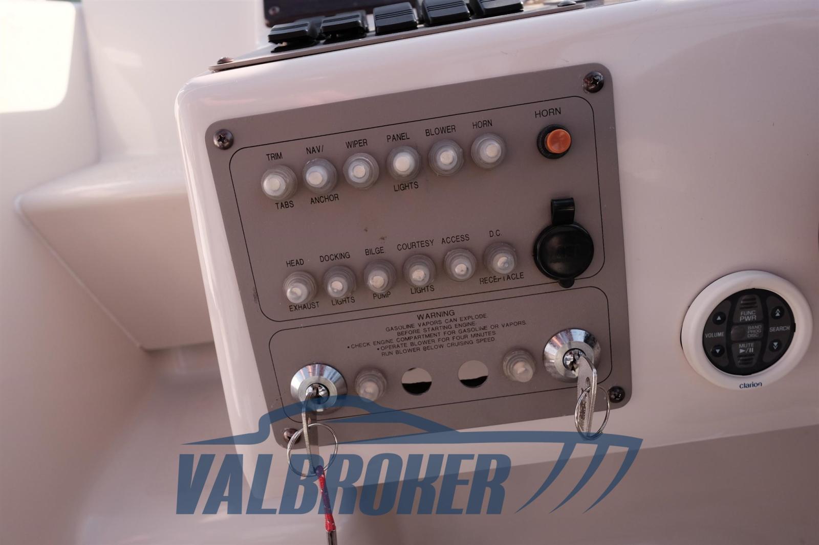 Cabin cruiser polyvalent équipé de 2 moteurs Mercruiser 4.3 EFI de 220 CV avec seulement quelques heures de vol.