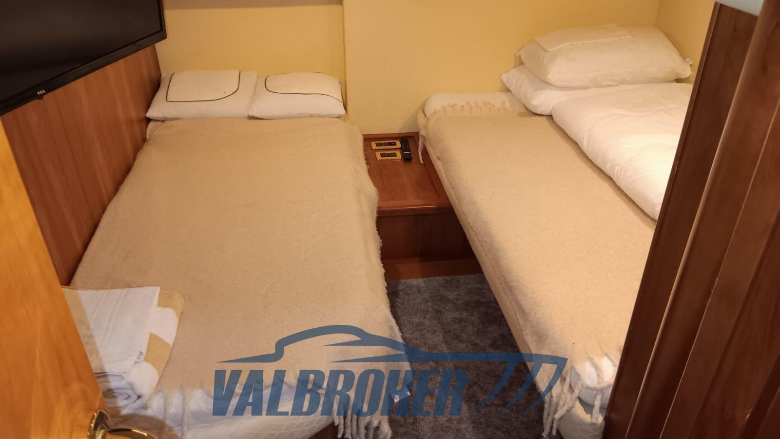 3 cabines et 3 salles de bain. Groupe électrogène, plancher intérieur en bois, teck dans le cockpit. Réservoir avec treuil électrique pour annexes. Nouvelles feuilles pour la couverture du flybridge.