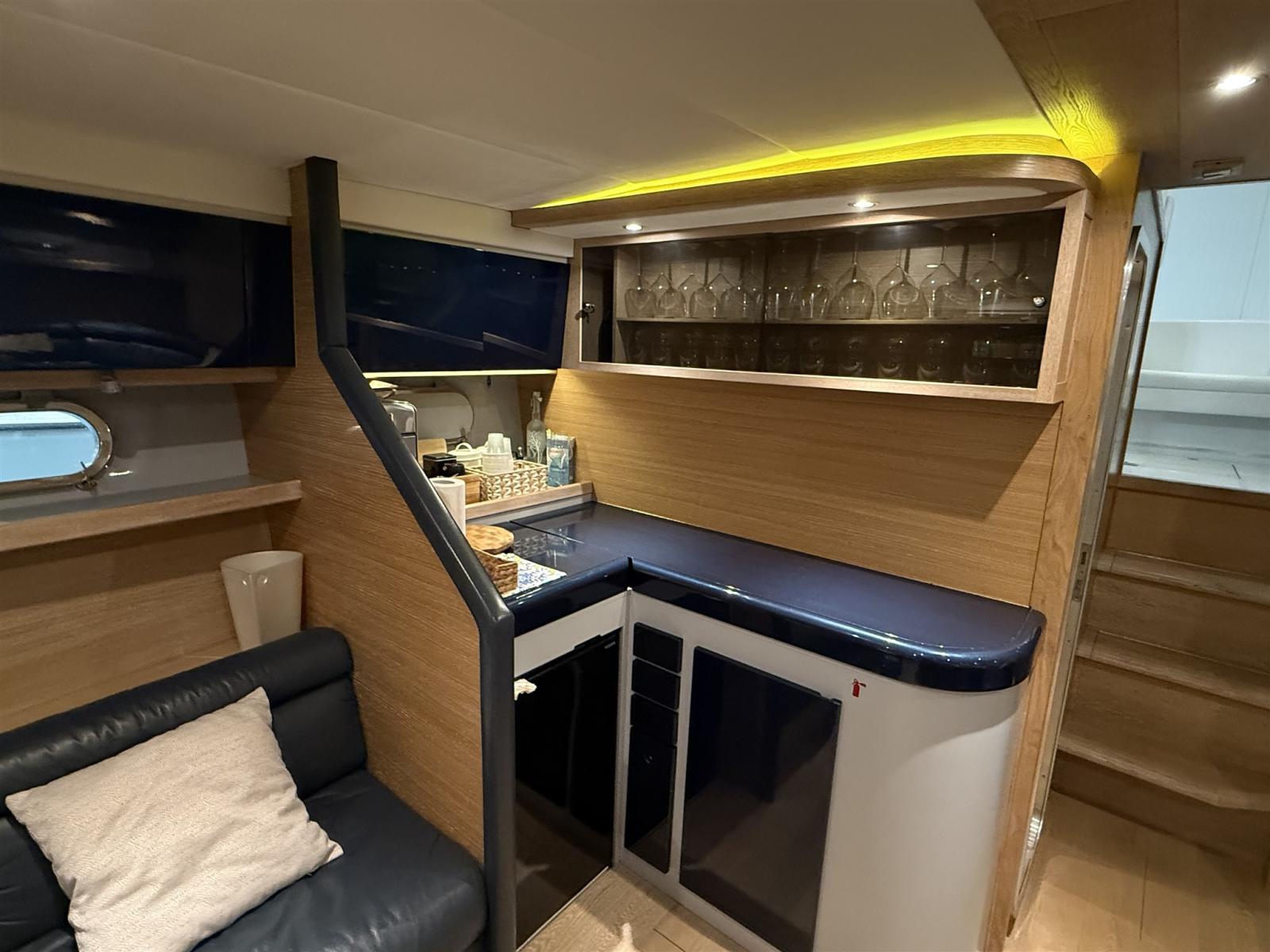 Ouverture du compartiment moteur électrique, Eau sous pression, Câble d’alimentation à quai, Flaps hydrauliques, Hard top, Lavabo dans le cockpit, Éclairage de courtoisie, Passerelle, Prise de quai, Guindeau électrique, Echelle de bain, table de cockpit, Corne.