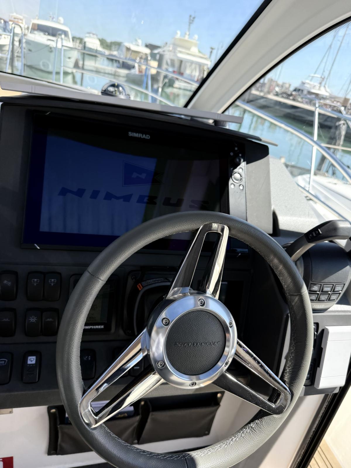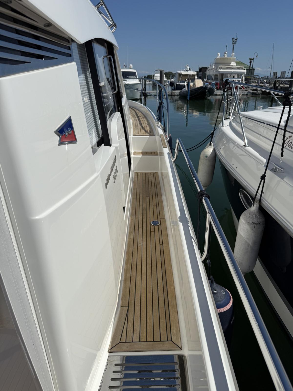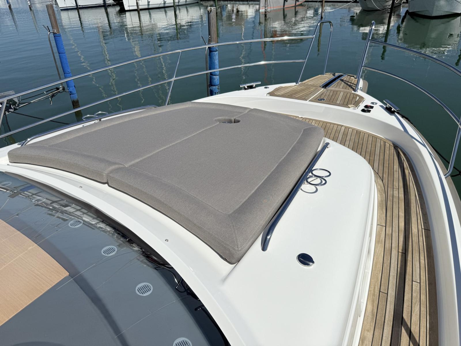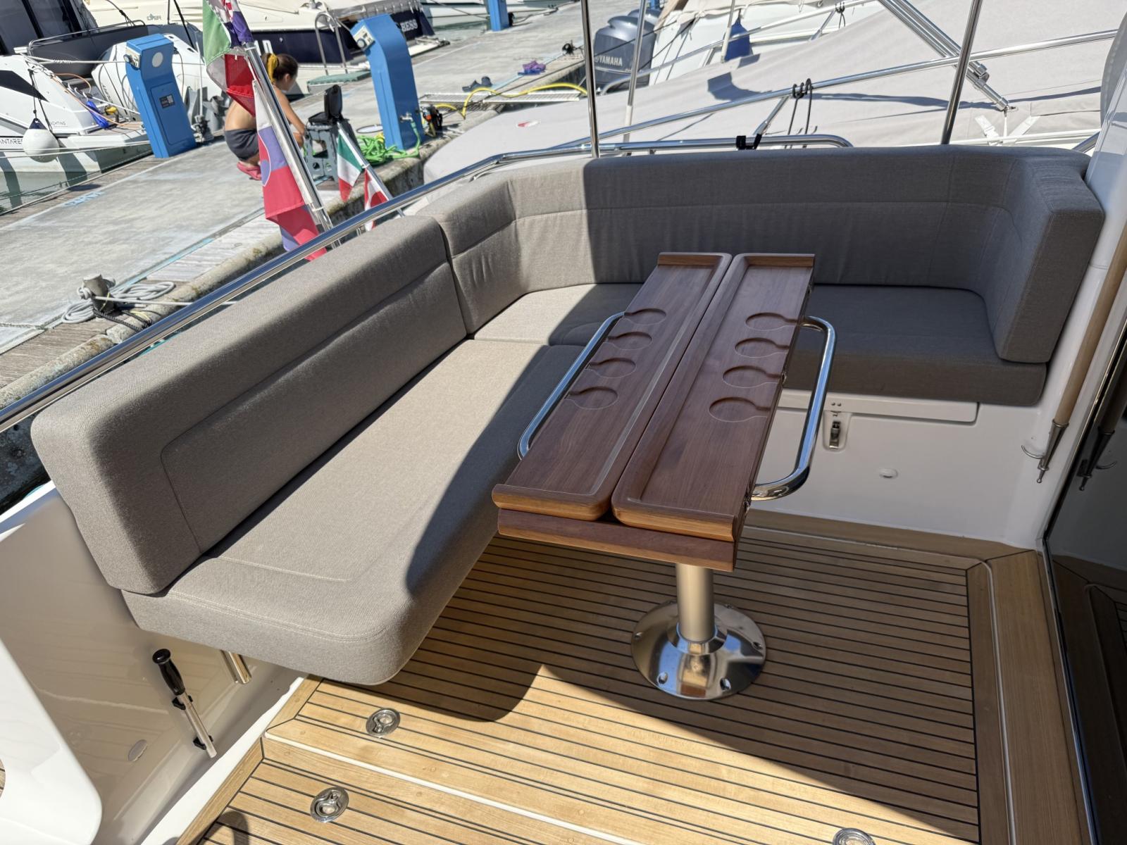 Alarme moteur, Alarme de pompe de cale, Eau sous pression, Douche de cockpit, Phare de poursuite, Flaps électriques (Humphree), Indicateurs de flaps, Éclairage de courtoisie, Plateforme arrière, Pompe de cale automatique, Pont en teck, Porte latérale, Cockpit en teck, Prise de quai, Guindeau électrique, Echelle de bain, table de cockpit, Corne.
