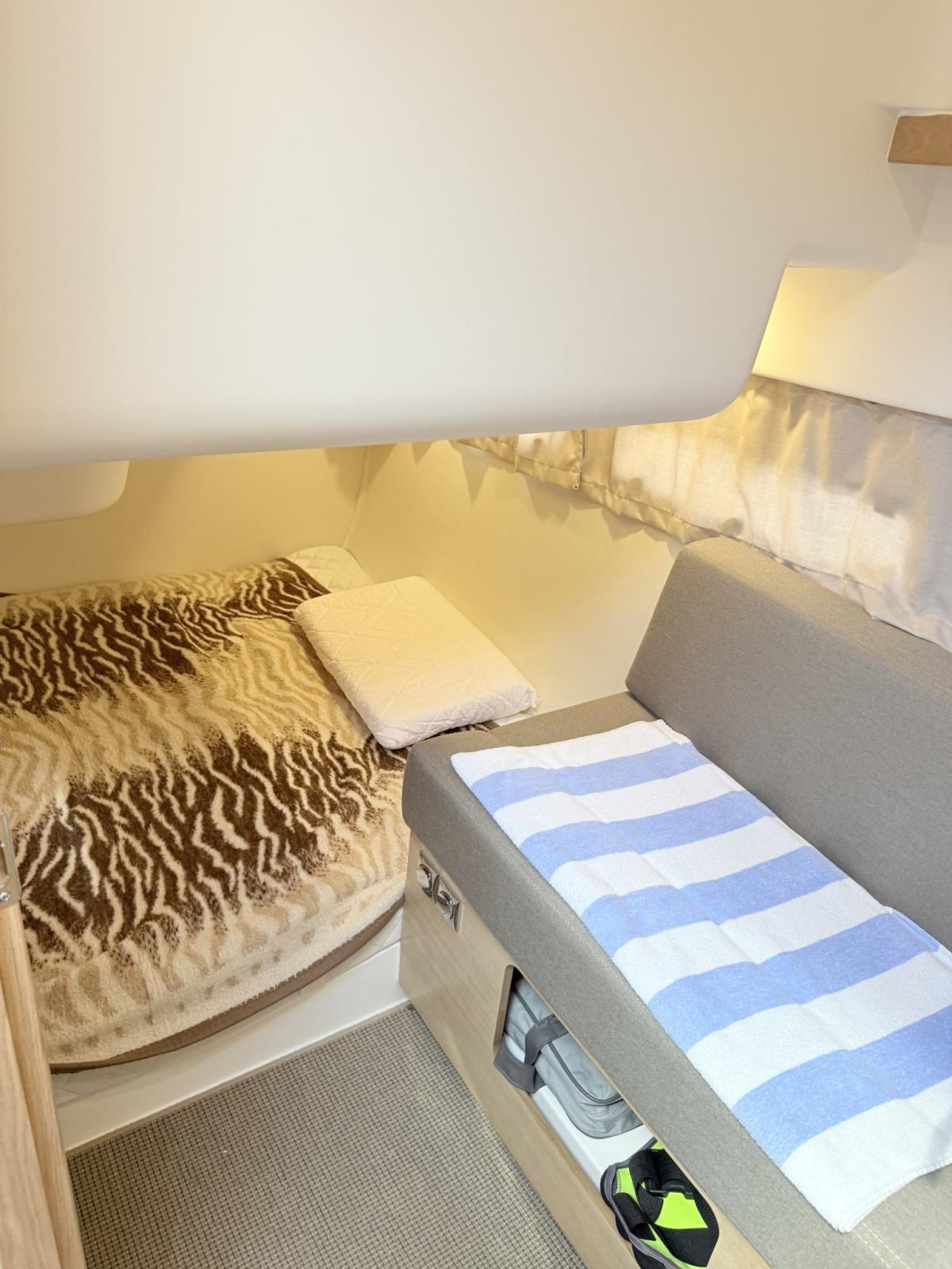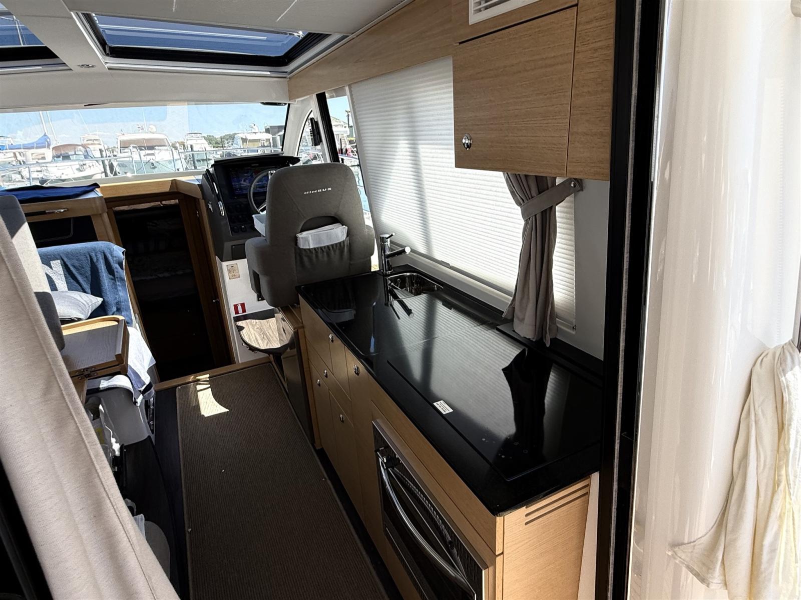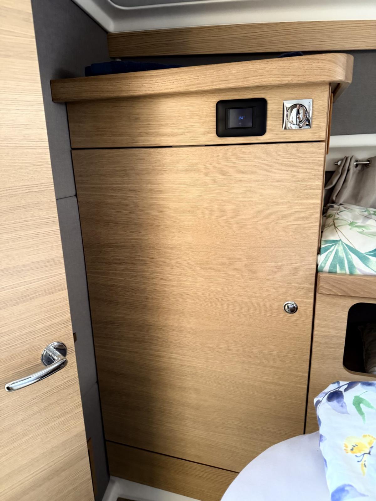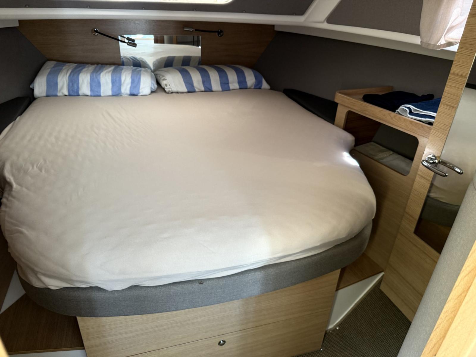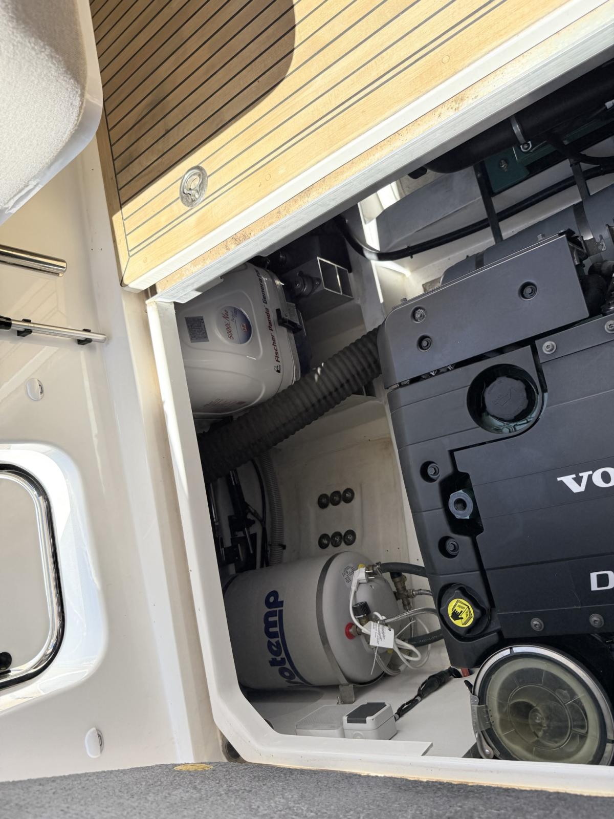 Alarme moteur, Alarme de pompe de cale, Eau sous pression, Douche de cockpit, Phare de poursuite, Flaps électriques (Humphree), Indicateurs de flaps, Éclairage de courtoisie, Plateforme arrière, Pompe de cale automatique, Pont en teck, Porte latérale, Cockpit en teck, Prise de quai, Guindeau électrique, Echelle de bain, table de cockpit, Corne.