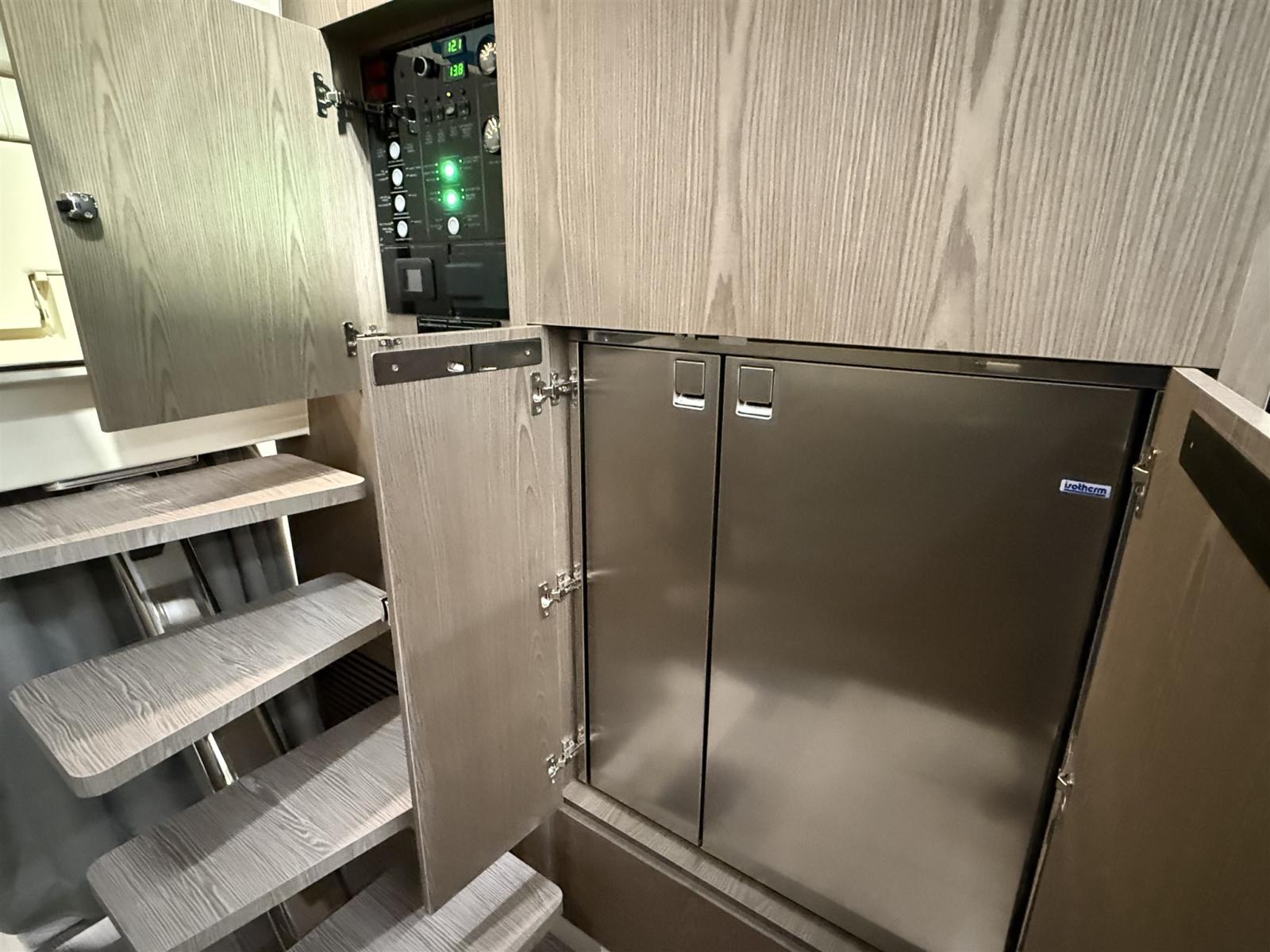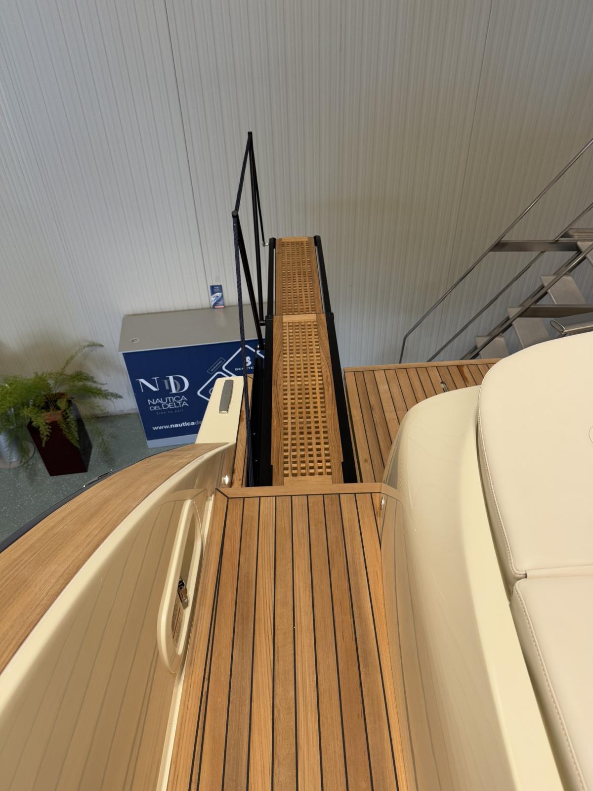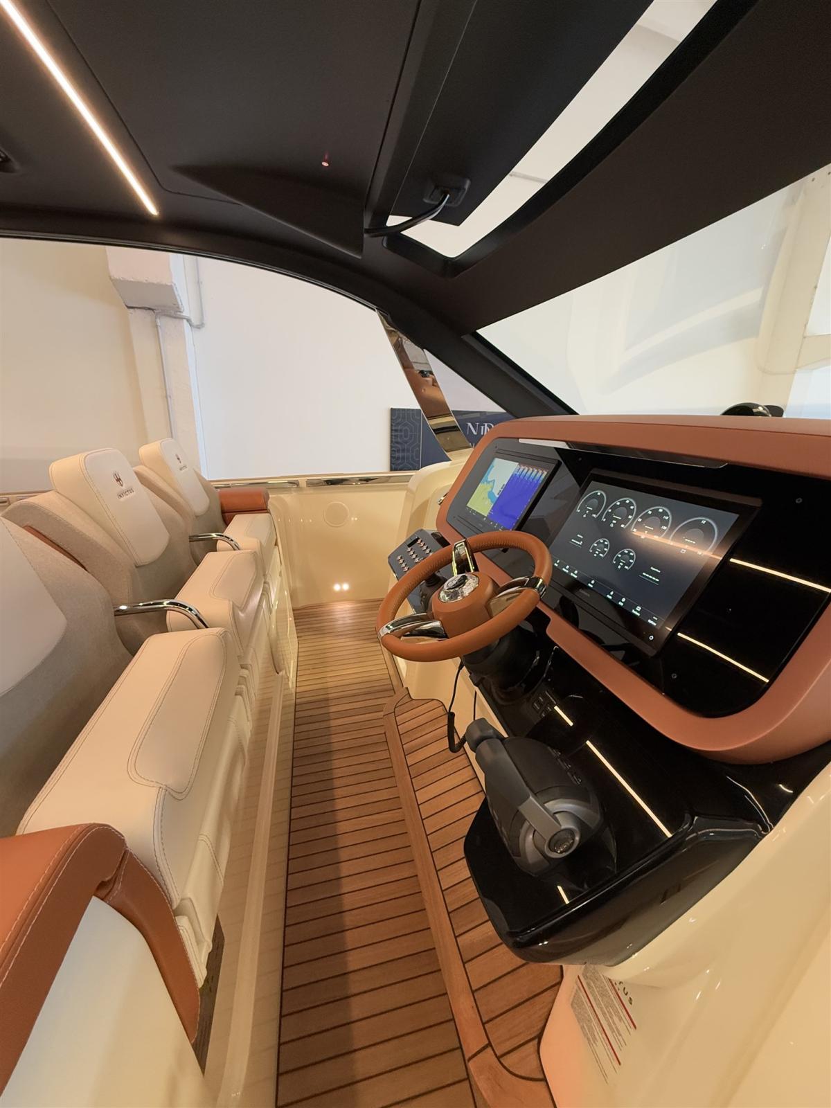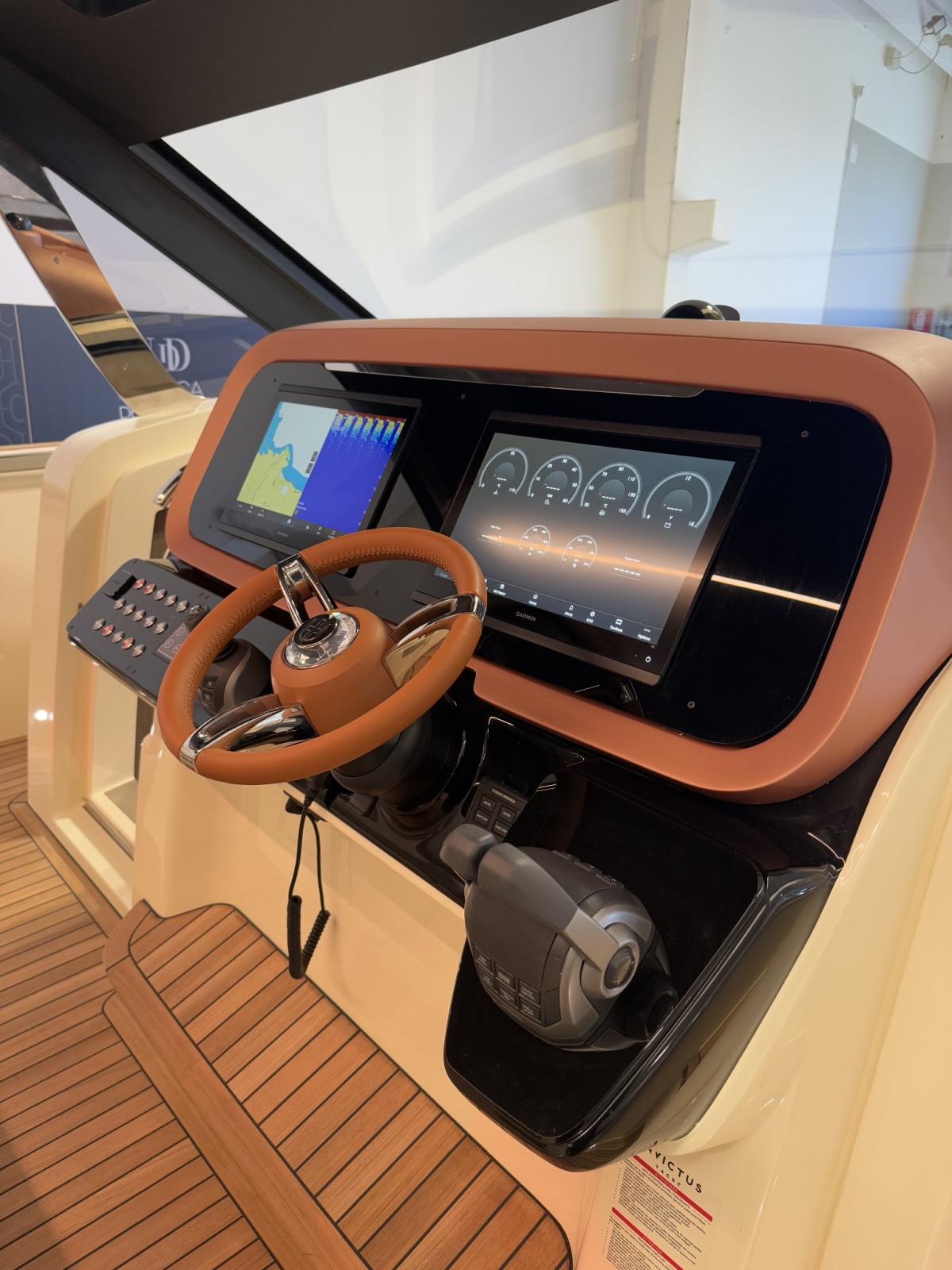 Indicateur d'angle de barre, Commande électrique, Ordinateur fixe de bord, Joystick, 2 Plotter GPS (16 pollici), Siège copilote.