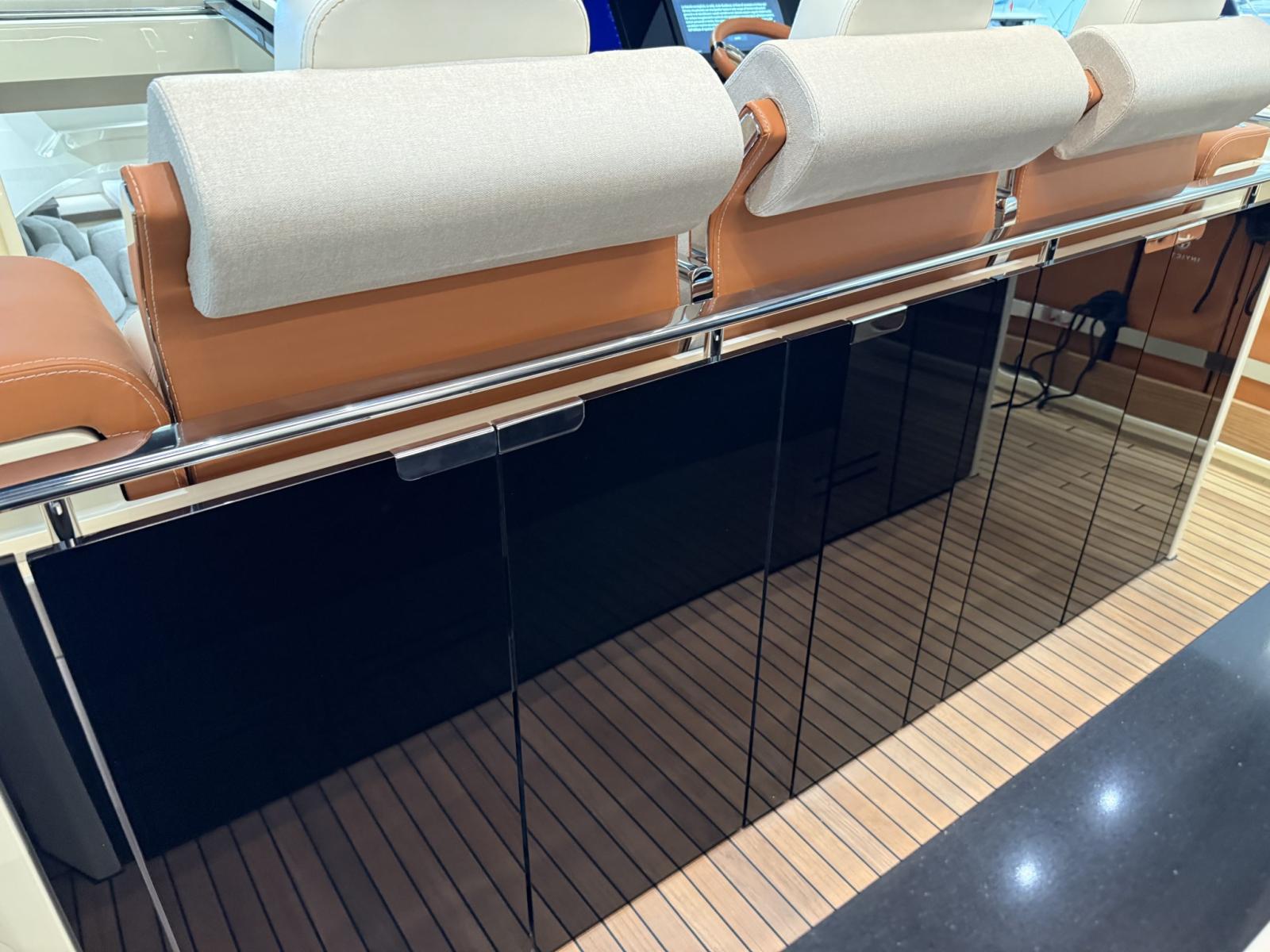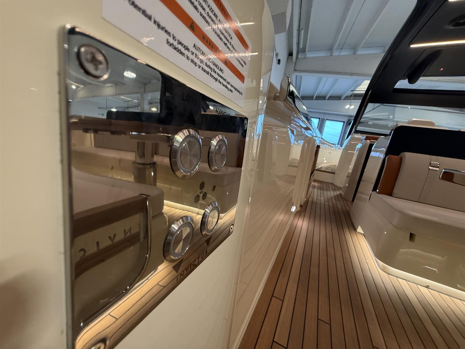 Alarme moteur, Ouverture du compartiment moteur électrique, Auto Dynamic Trim Interceptor, Eau sous pression, Passavant en teck, Couleur spéciale (Spectrum blue), Douche de cockpit, Flaps électriques (Interceptor), Garage à annexe, Hard top (carbonio), Extincteur(s) fixe(s), Indicateurs de flaps, Lavabo dans le cockpit, Éclairage de courtoisie, Passerelle (idraulica a sfilo), Plateforme arrière (affondabile), Pompe de cale automatique, Cockpit en teck, Prise de quai, Guindeau électrique, Echelle de bain, table de cockpit, Corne.