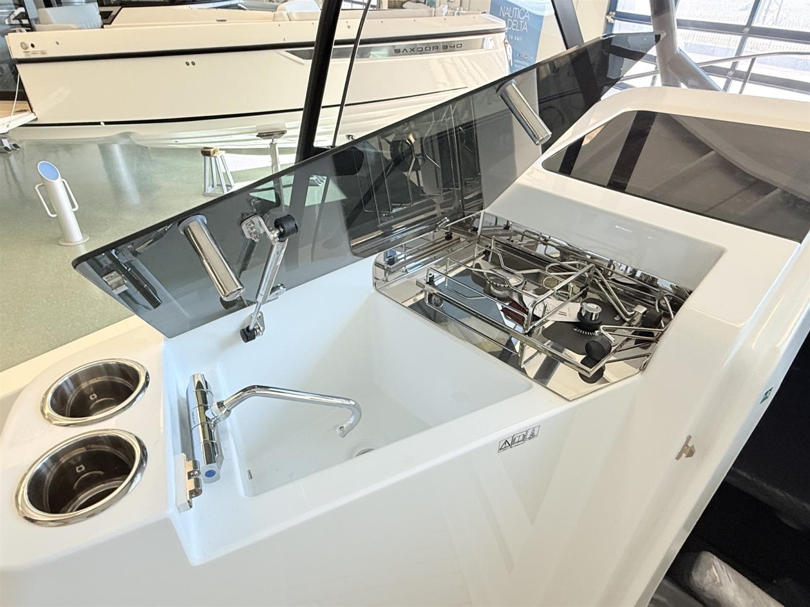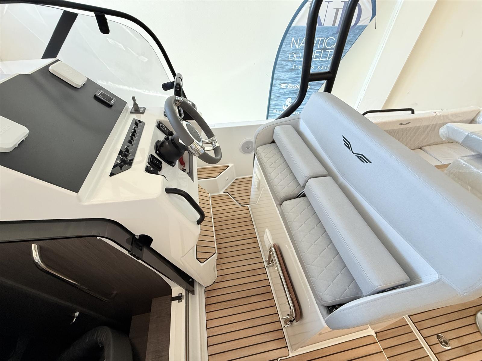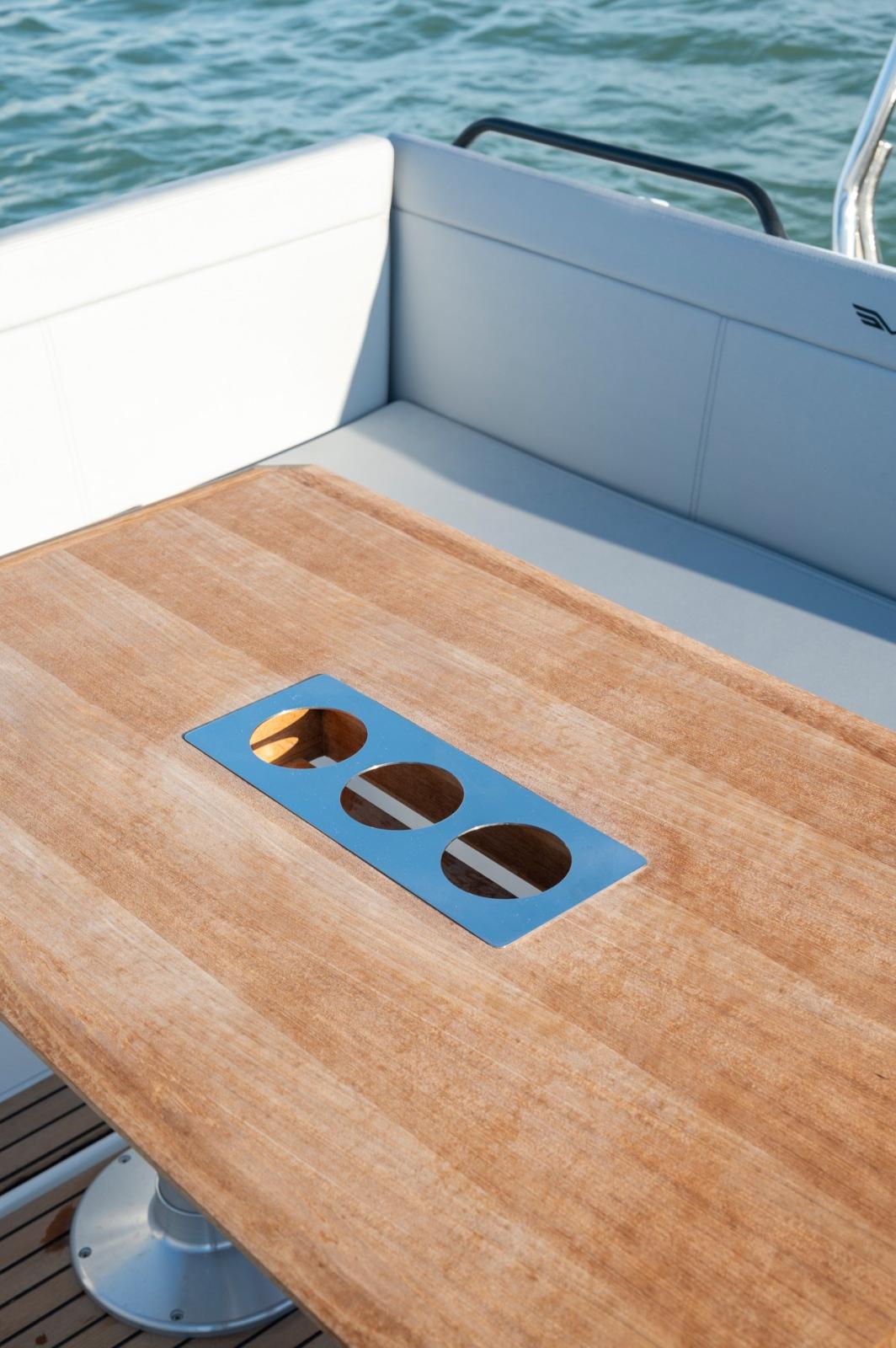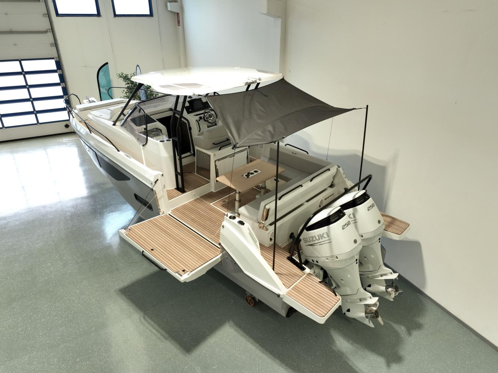 2 Alarme moteur, Eau sous pression, Passavant en teck, Couleur spéciale, Douche de cockpit, Crochet de remorquage pour ski nautique, Lavabo dans le cockpit, Spots sous-marins, 2 Plateforme arrière, Pompe de cale manuelle, Cockpit en teck, Prise de quai, Guindeau électrique, Echelle de bain, table de cockpit, Corne, T-Top.