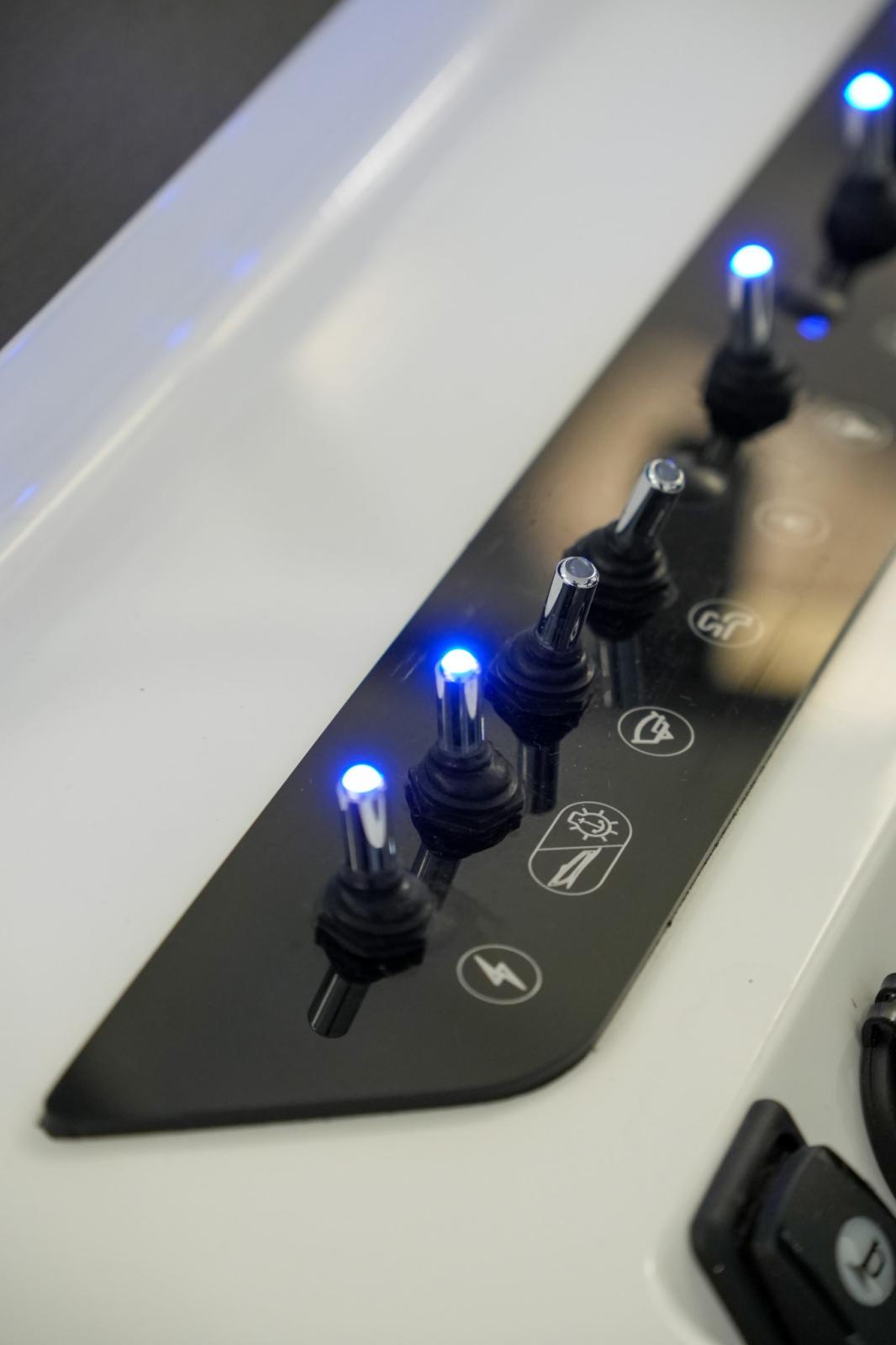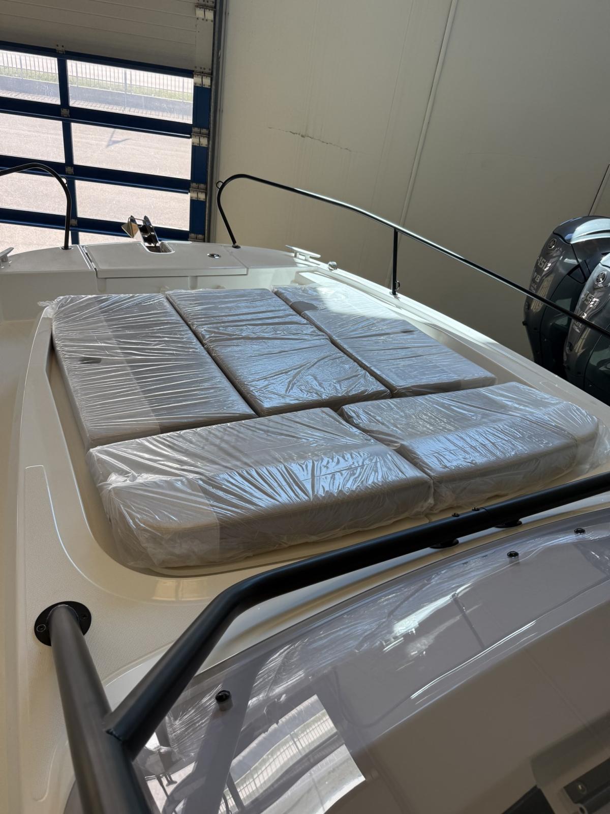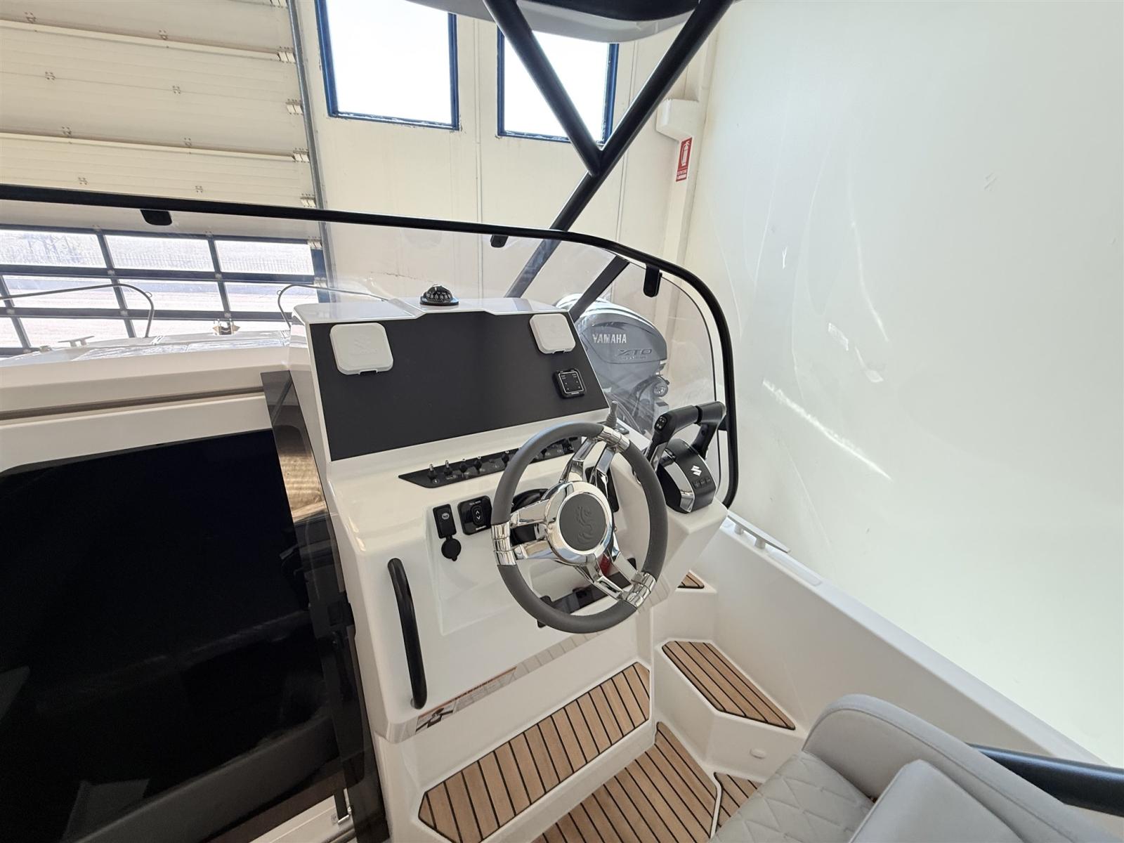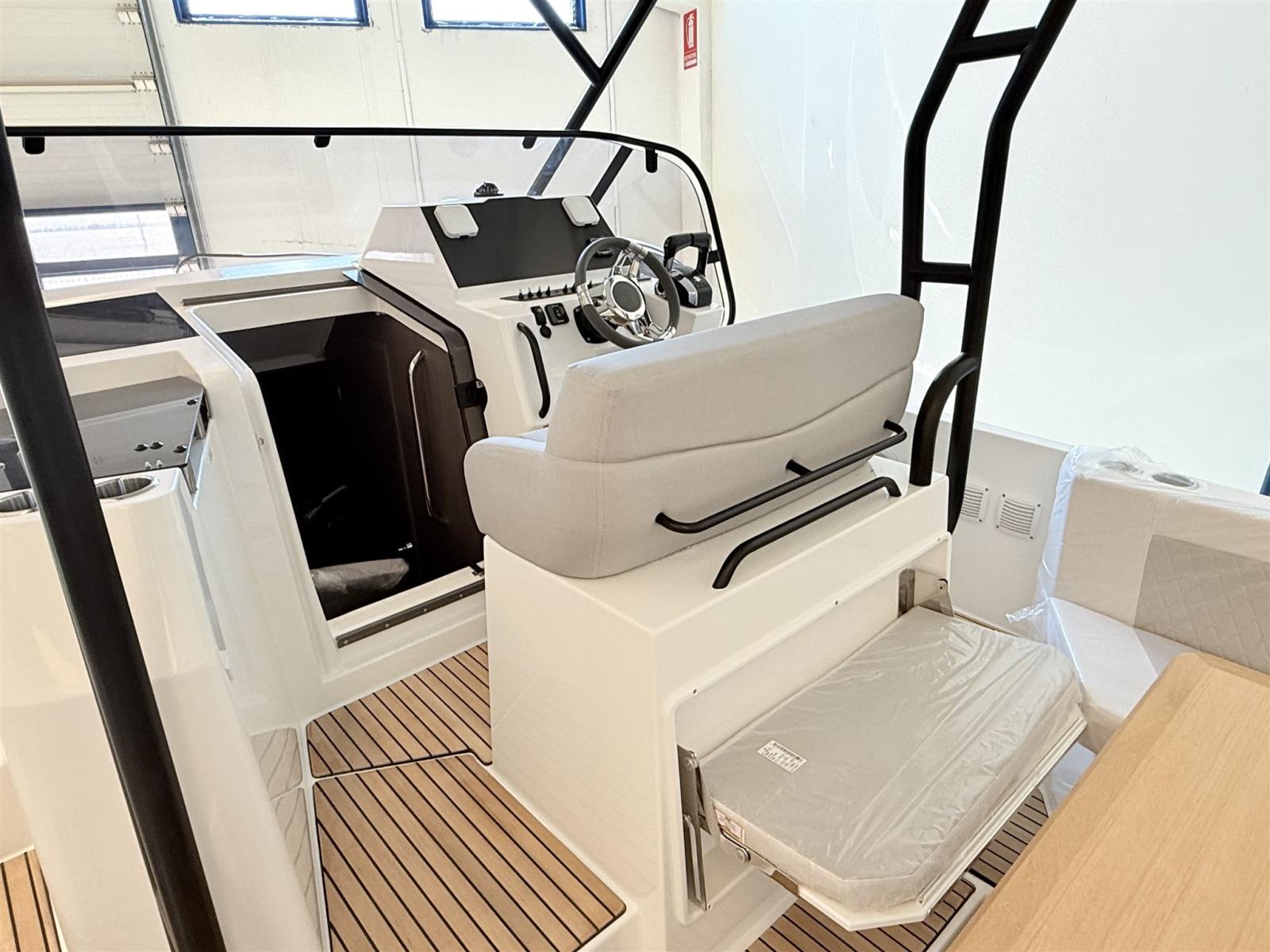 2 Alarme moteur, Eau sous pression, Passavant en teck, Couleur spéciale, Douche de cockpit, Crochet de remorquage pour ski nautique, Lavabo dans le cockpit, Spots sous-marins, 2 Plateforme arrière, Pompe de cale manuelle, Cockpit en teck, Prise de quai, Guindeau électrique, Echelle de bain, table de cockpit, Corne, T-Top.