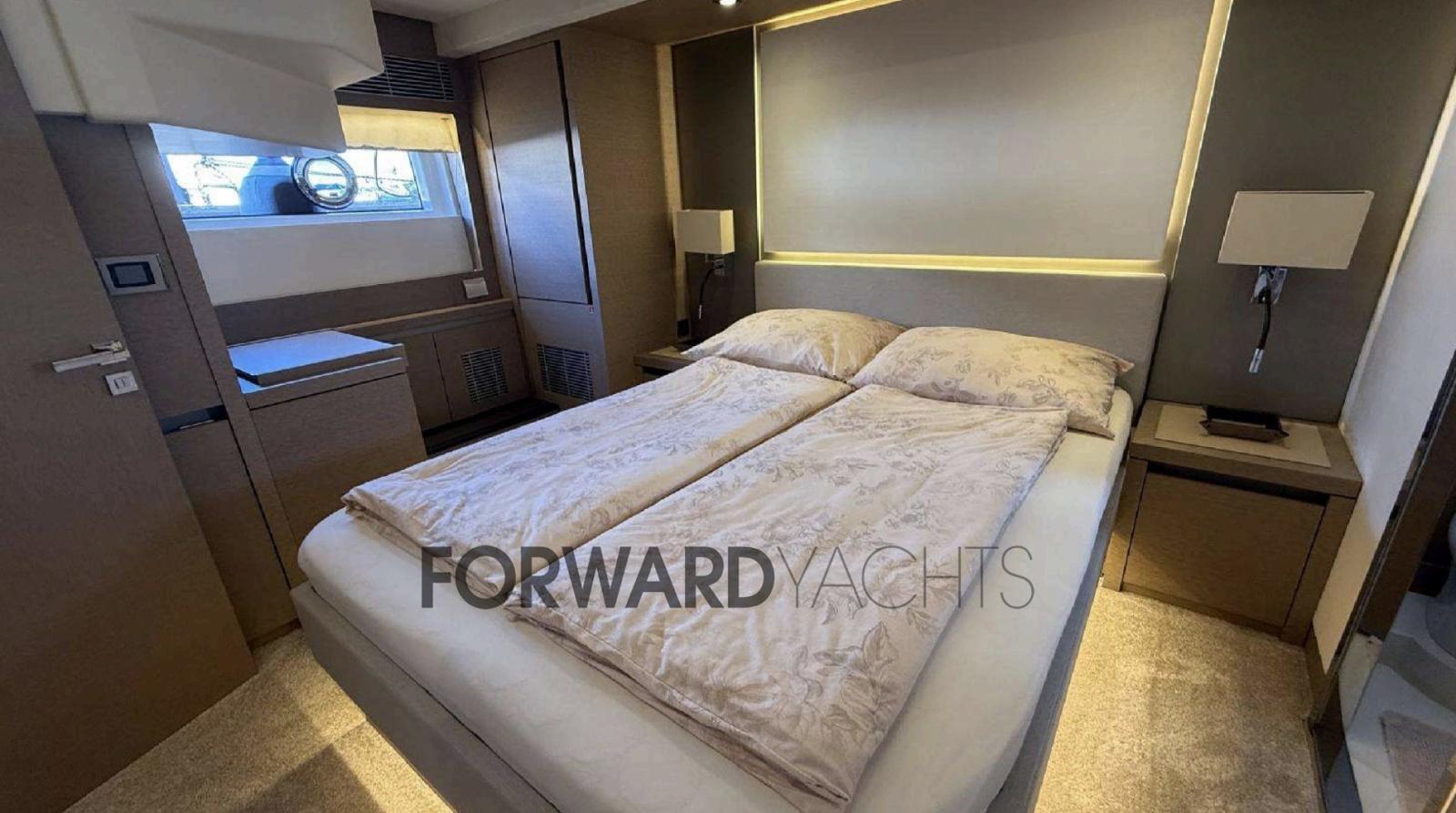 Le yacht dispose de quatre cabines spacieuses avec salle de bains privative et d’une cabine d’équipage indépendante, assurant confort et intimité à tous les invités à bord. Les espaces extérieurs, du flybridge panoramique au cockpit en passant par le bain de soleil à l’avant, vous invitent à découvrir la mer à tout moment de la journée.