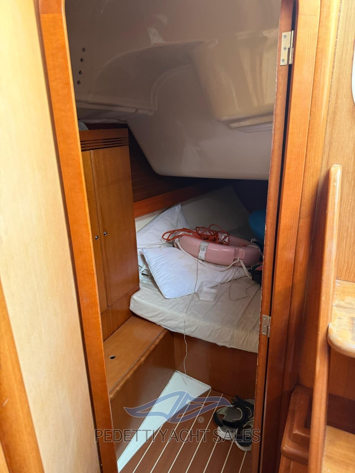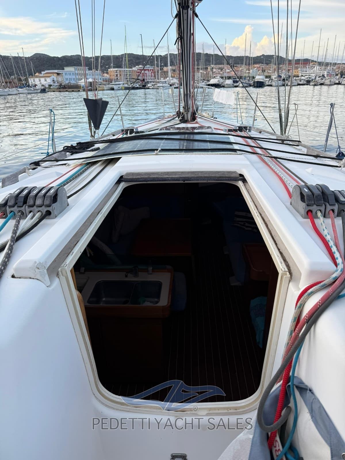 Eau sous pression, 3 Batteries, Câble d’alimentation à quai, Douche de cockpit, Panneau solaire, Passerelle (in teak), Pompe de cale manuelle, Cockpit en teck, Prise de quai, Guindeau électrique, Echelle de bain, Chaise support HB, table de cockpit, 6 Winch.
