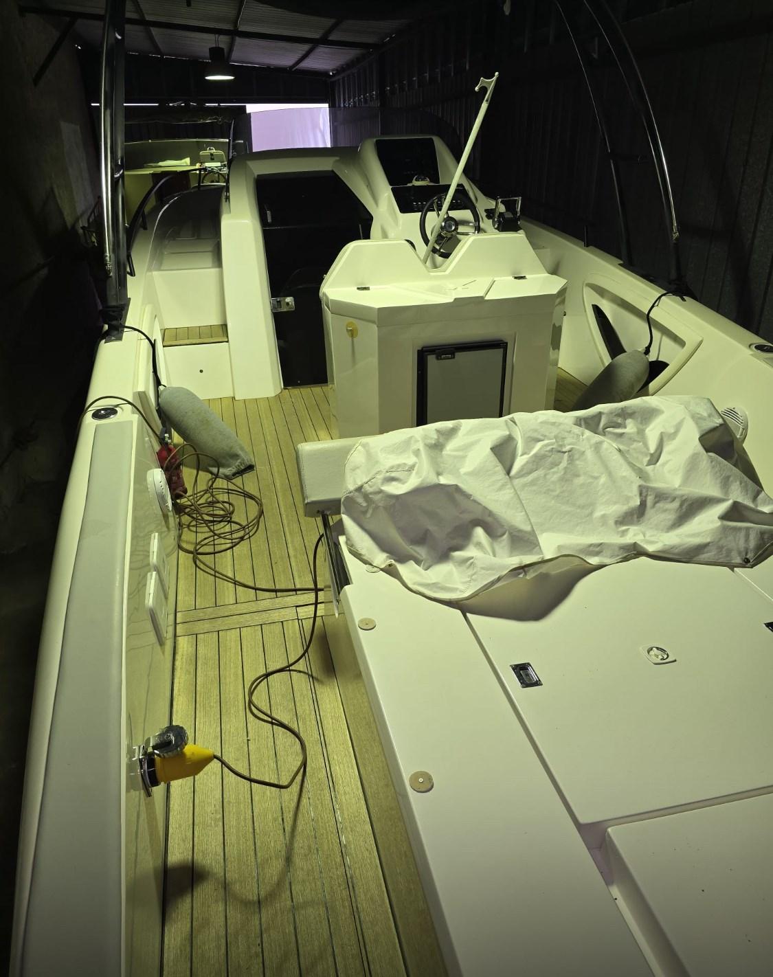 Alarme moteur, Éclairage de courtoisie, Cockpit en teck, Corne.
