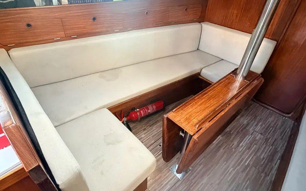 Ce Gibsea 114 de 1981 est un voilier de croisière réputé pour sa robustesse, son volume intérieur et son excellent comportement en mer. Avec ses 11,40 m de longueur (12 m avec jupe arrière) et sa largeur de 3,80 m, il offre une habitabilité remarquable pour cette catégorie.