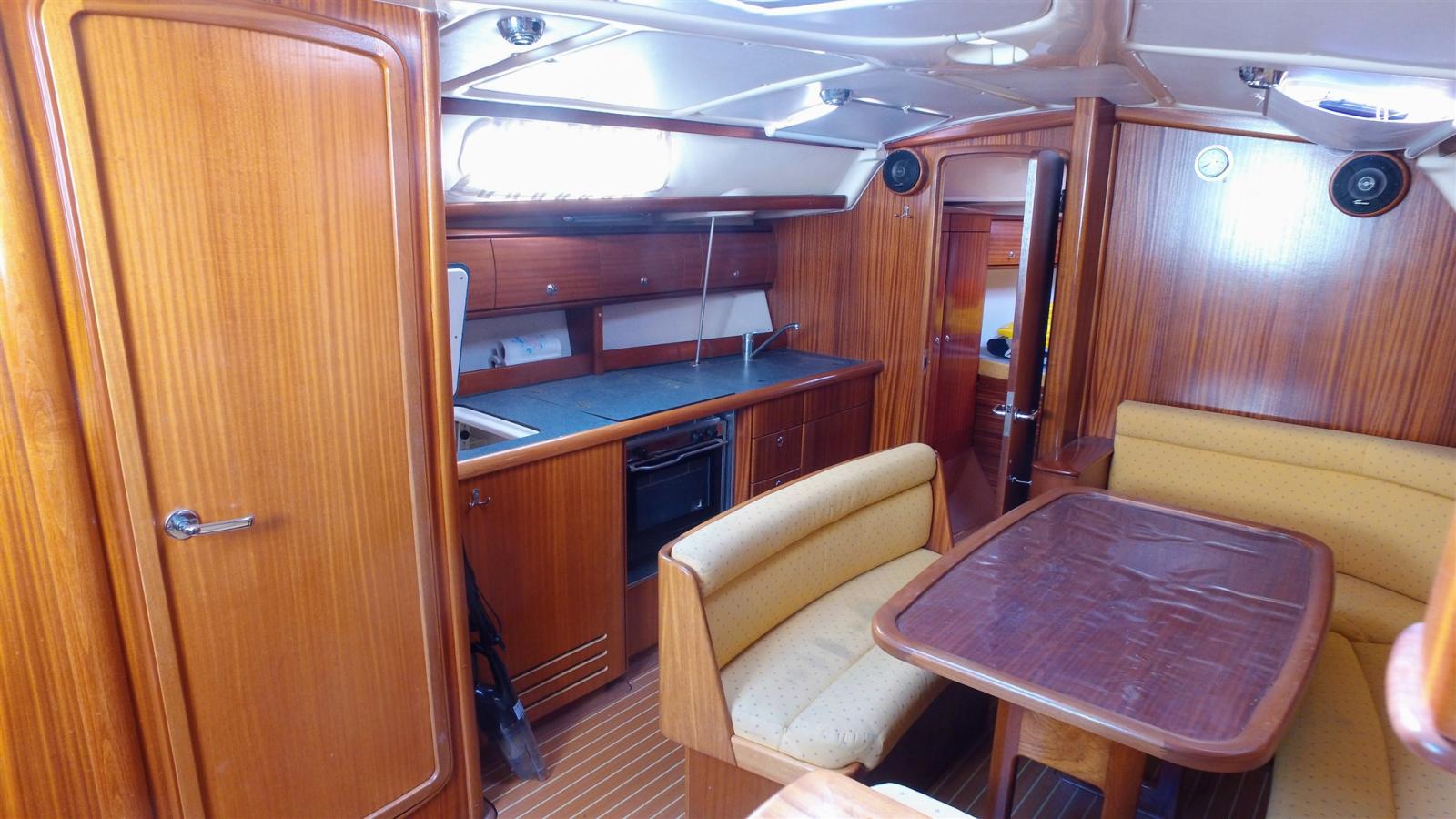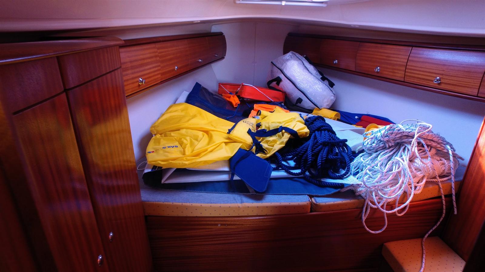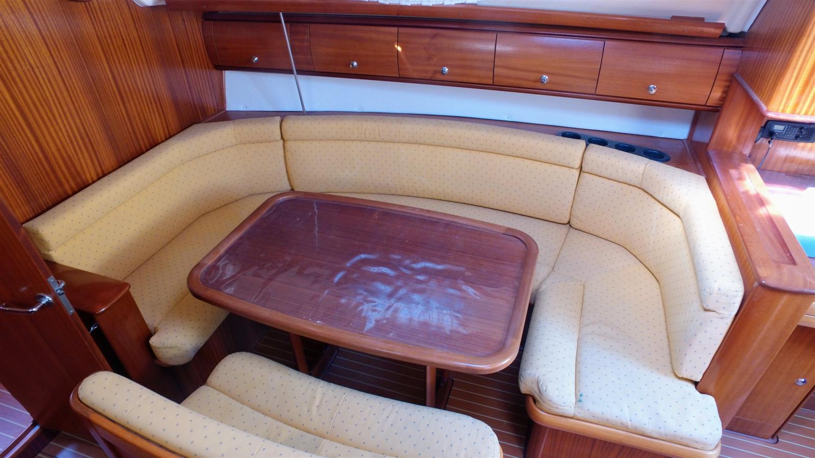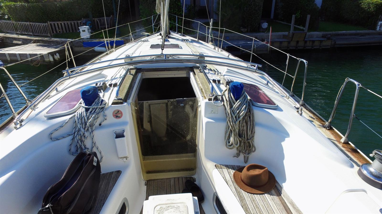Alarme moteur, Alternateur, Ancre (15 KG), 4 Winch selftailing, Eau sous pression, 3 Batteries (2 services de 140 amp et une moteur), Chargeur de batterie (Quick 30 amp), Câble d’alimentation à quai, Douche de cockpit, Propulseur d'étrave (avec batterie), Pompe de cale manuelle, Prise de quai, Répétiteur électronique (Raymarine ST60 tridata sur table à carte), Guindeau électrique (1000 W), Gréement monotoron, Echelle de bain, Chaise support HB (et Support BIP), table de cockpit, 2 Filières avec sortie latèrale.