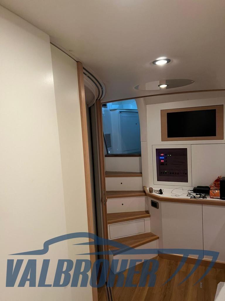 Eau sous pression, 8 Batteries, Hard top (apribile elettricamente), Passerelle (idraulica, inox), Plateforme arrière, Cockpit en teck, Prise de quai, Echelle de bain, table de cockpit.