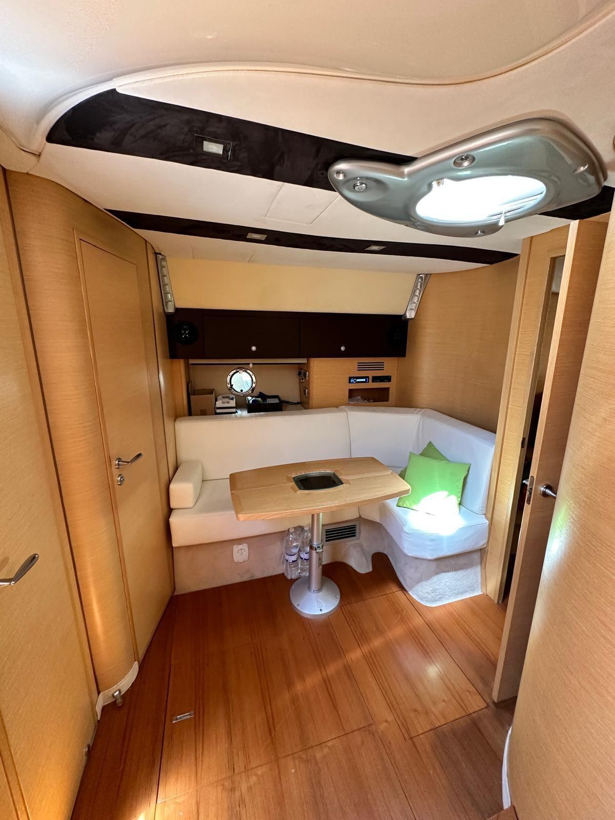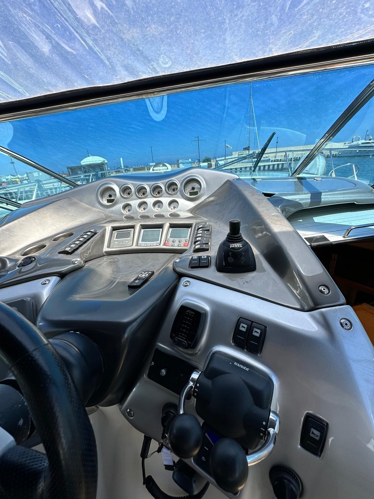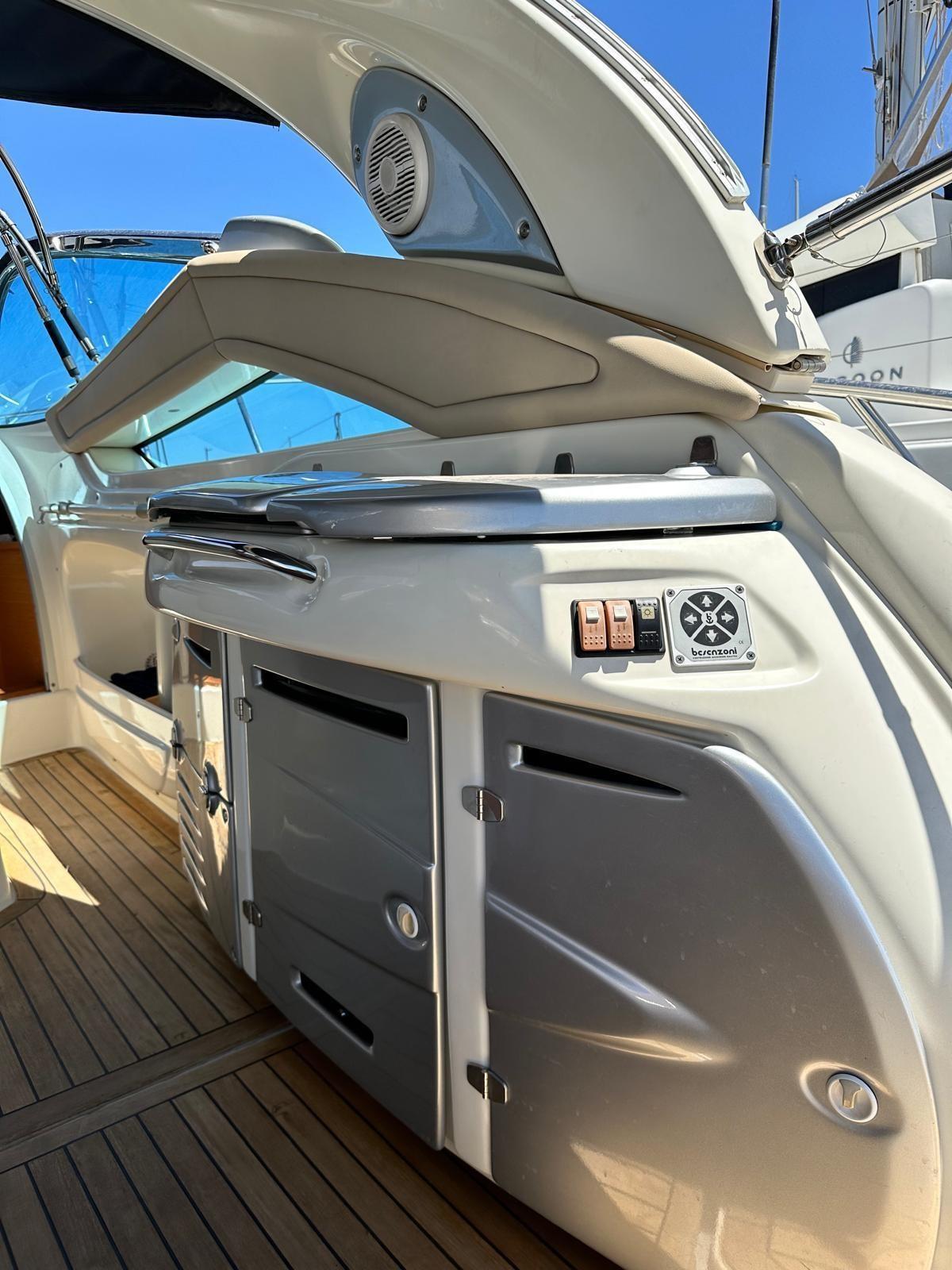Informations complémentaires : gps, sondeur, joystick, console, boussole, batteries, nombre de cabines : 2, nombre de couchettes : 6 personne(s), générateur, sonorisation, solarium, couverture, congélateur, cuisine, système de chauffage de l’eau, dispositif d’éclairage, équipement 220V, passerelle, pompe de cale, réfrigérateur, prise de quai, douche de cockpit, plate-forme de bain, échelle de bain, table de cockpit, éclairage de cockpit