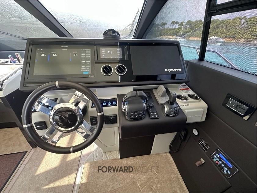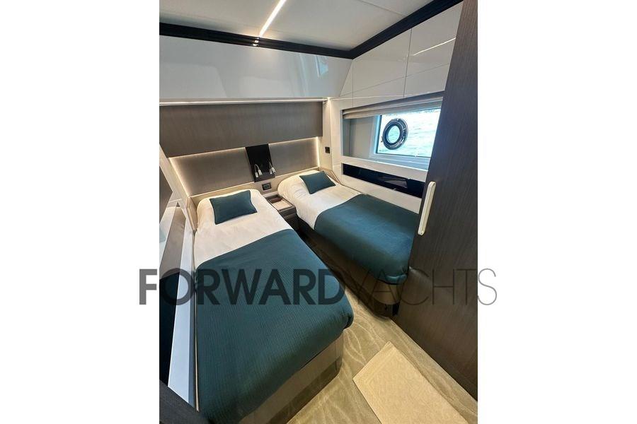 Seakeeper NG16 - 2 générateurs (Kohler 19 kVA et Mase 6,5 kVA) - watermaker HP 360 l/h - propulseur avant - plateforme de bain hydraulique - maître de câble Glendening - feux sous-marins (4) - électronique complète Raymarine (4 x 16") - AIS - radar Raymarine - pilote automatique - VHF - sondeur de profondeur - troisième station de manœuvre avec joystick dans le cockpit - teck dans cockpit, ponts latéraux et flotte - passerelle hydraulique Opacmare - toit rigide avec toit ouvrant - proue bimini hydraulique - mouche bimini hydraulique - auvent Cockpit électrique - chaîne d’ancre de 100 m + ancre Ultra Marine 45 kg - treuil de cockpit - Starlink - système Bose Hi-Fi - salon TV avec système hi-low - TV dans 3 cabines + cabine d’équipage - Audio Fusion cockpit - 4 cabines + cabine d’équipage - 3 salles de bain - climatisation réversible - salon en cuir - plancher en bois dans le salon - coffre - machine à laver - sèche-linge - lave-vaisselle - four + micro-ondes - 4 réfrigérateurs - 1 congélateur - cave à vin.